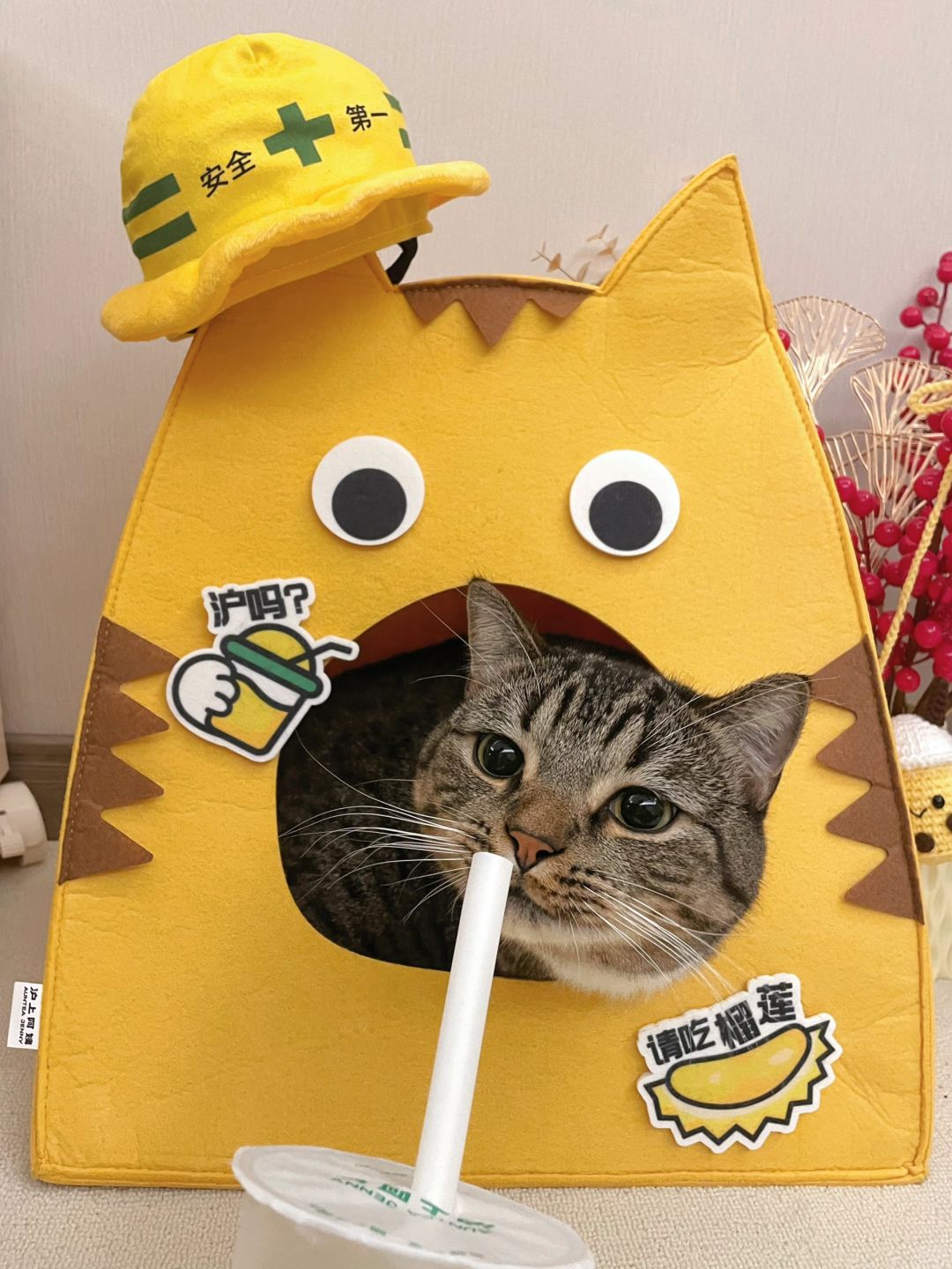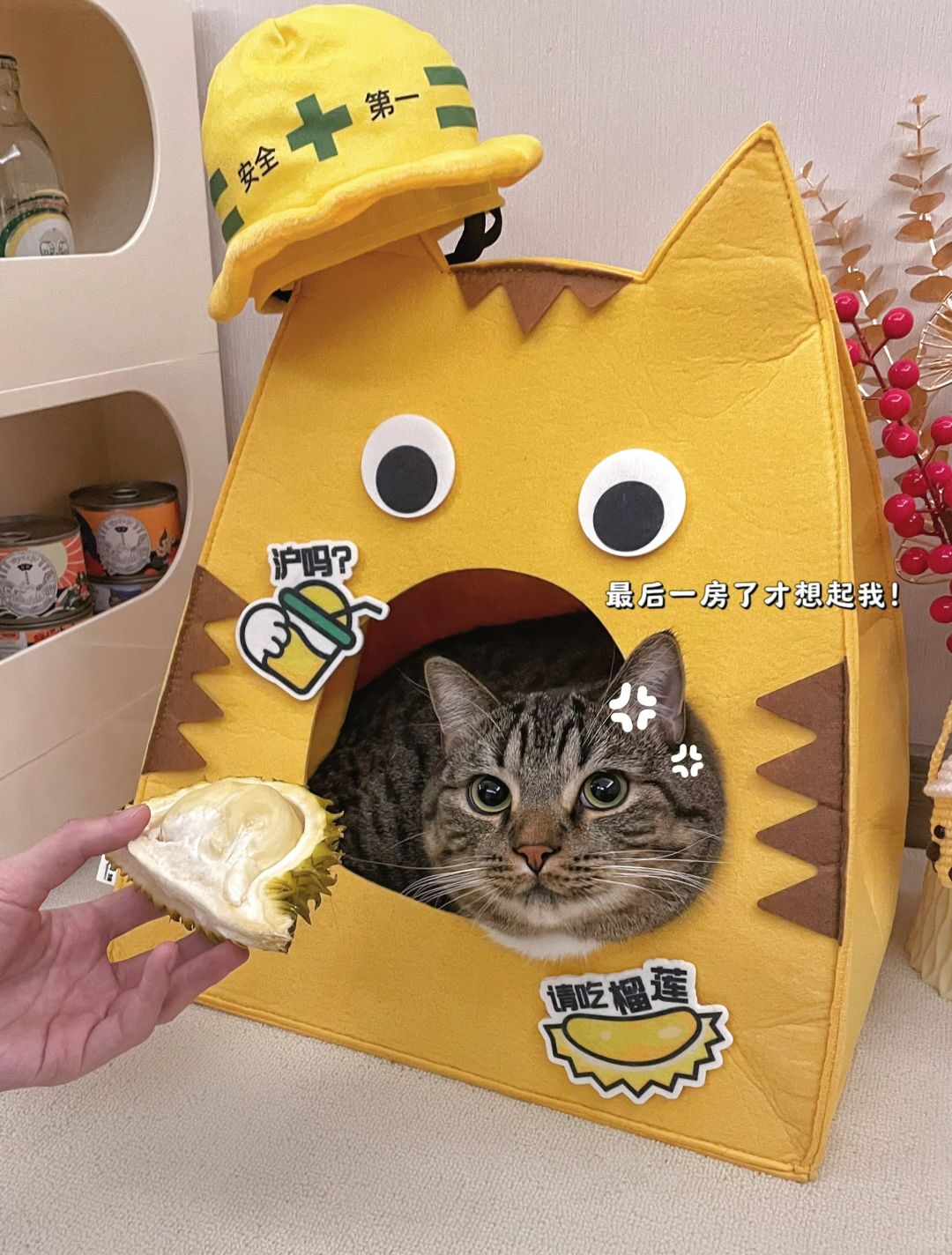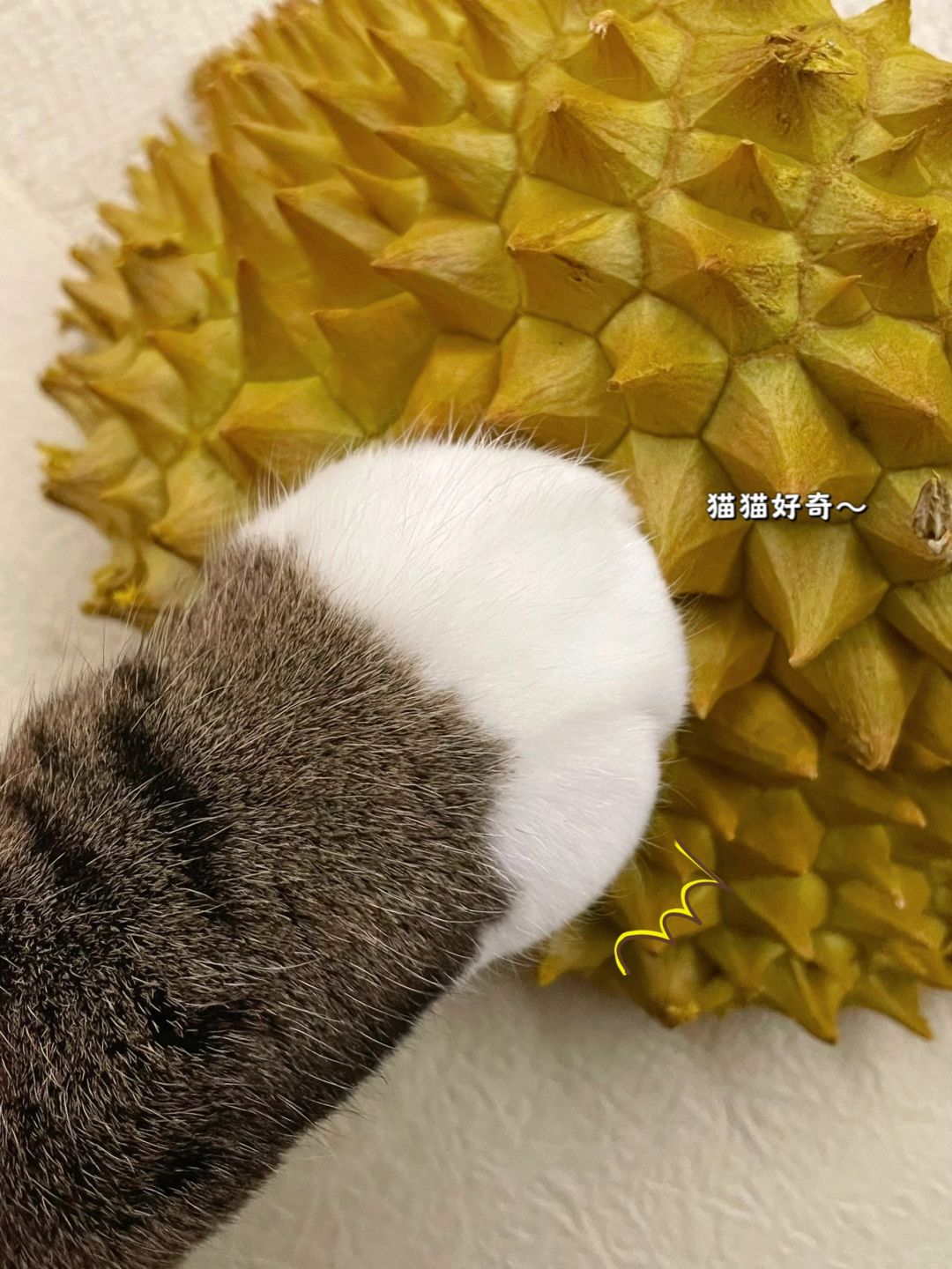 把榴莲拿回家的时候饼饼还挺很警惕,对我喵喵大叫!变身猫工头说必须给它检验了才能进屋![抓狂R]