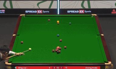 丁俊晖单杆73分以4-1领先张安达拿到赛点 北京时间1月19日,2024斯诺克大奖赛,丁俊晖与张安达的1/4决赛第5局,丁俊晖上手后,单杆73分以74-15拿下胜利,从而将大比分定格在4-1拿到赛点。 图一:丁俊晖上手后,以绿球进行调整。 图二:在没有叫到黑球的情况下,需要准度保障,丁俊晖能够稳稳打进蓝球右上方顶袋。 图三:需要简化球堆时,他的K球球运也相当不错。 图四:最终打进黑球后,虽然K的红球不尽人意,但是,仍然以单杆73分取胜拿到赛点。