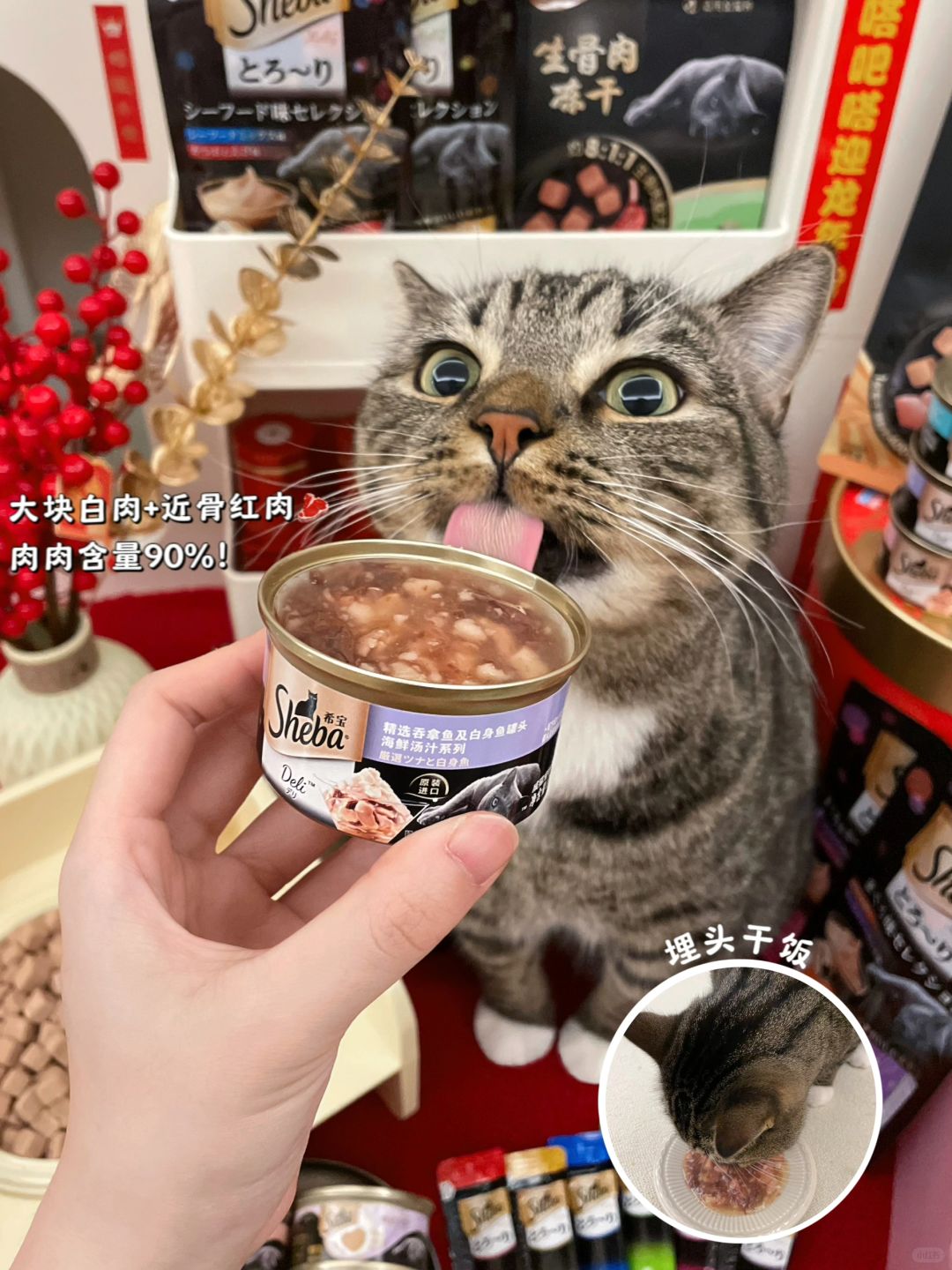 都是饼爱吃的,金罐的食材是精选优质深海鱼,90%含肉量,打开就能看到大块吞拿鱼肉~罐罐里的近骨红肉相比一般白肉罐头还能给饼子补铁,营养更全面!✌🏻