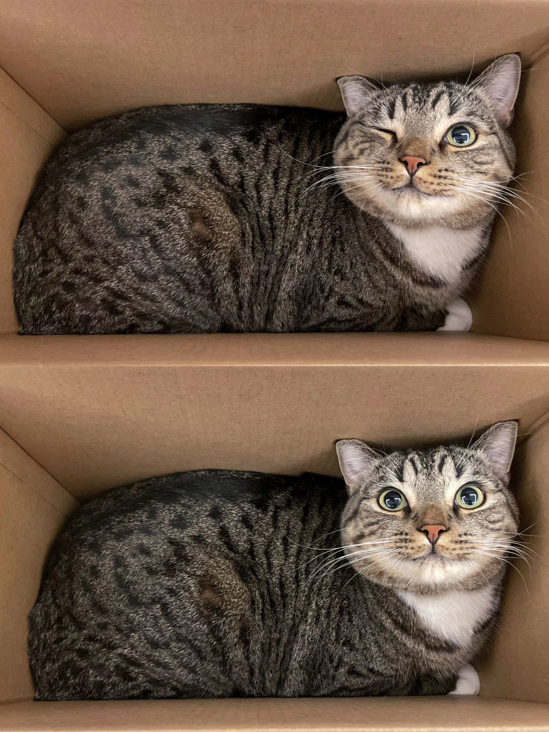 这几天我一位好朋友带着她家二胖🐈回武汉过年了!二胖可是饼饼当年的“绝育战友”[暗中观察R],所以我准备带点礼物过去,刚拿出纸箱饼饼就又钻里头赖皮了!