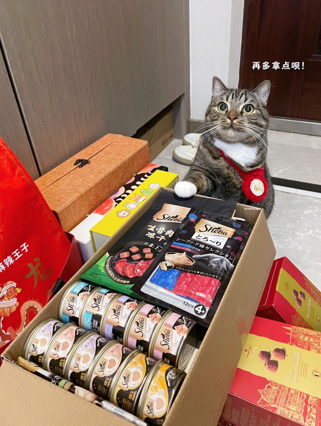在这里要隆重感谢希宝对饼饼的喜欢~ 专门给饼寄了好多好吃的(🙊在网上卖萌真的有用hhh)一半拿去给二胖当新年礼物,一半留下给饼饼整喵喵年夜饭!
