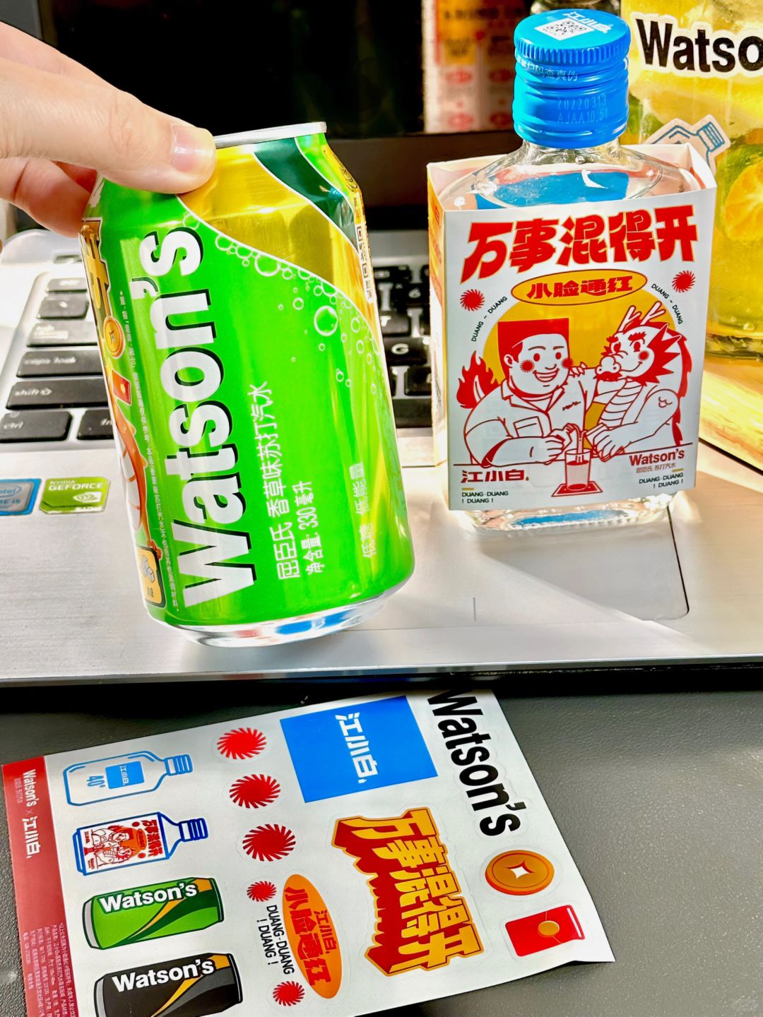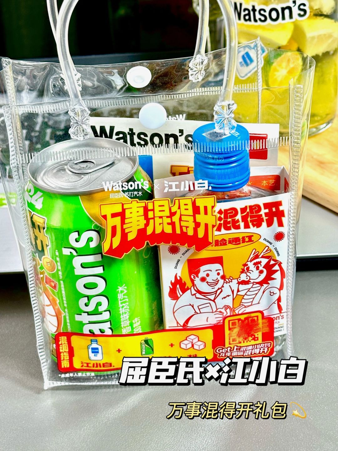 我用的是在便利店买的屈臣氏和江小白联名的万事混得开礼包~