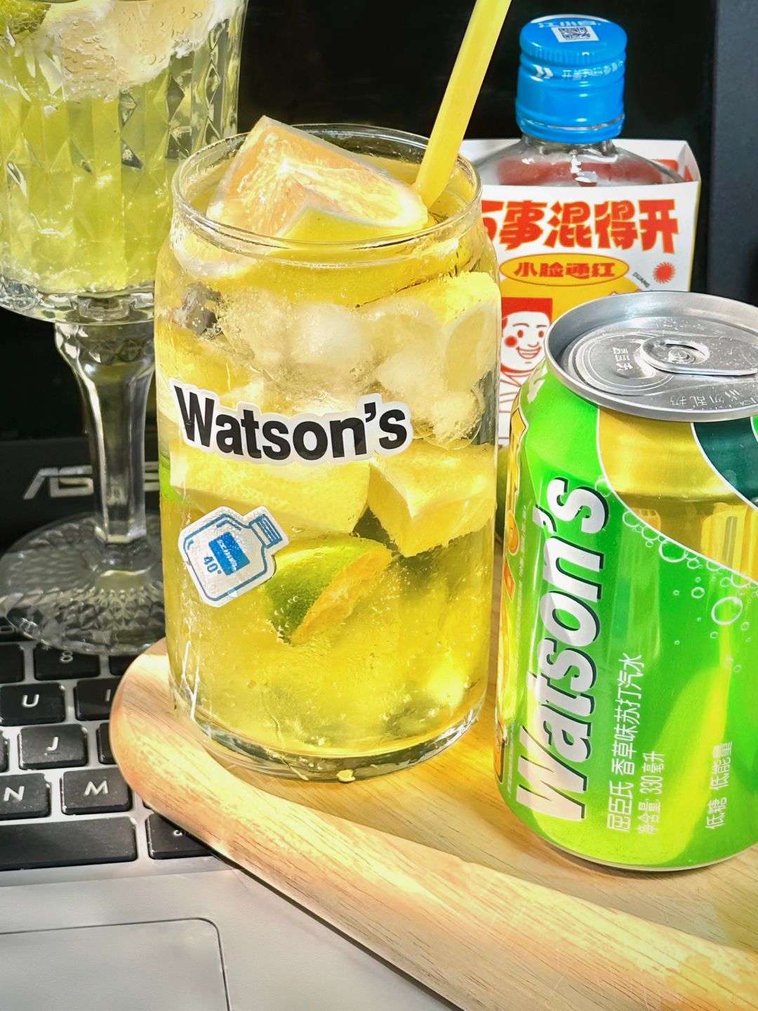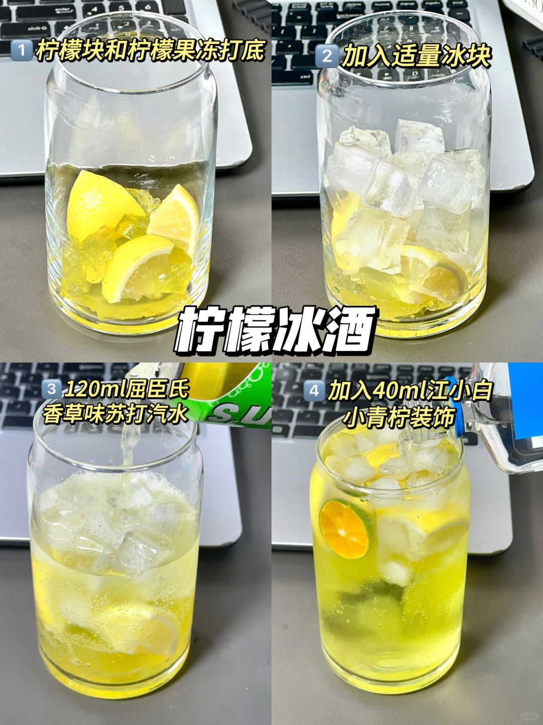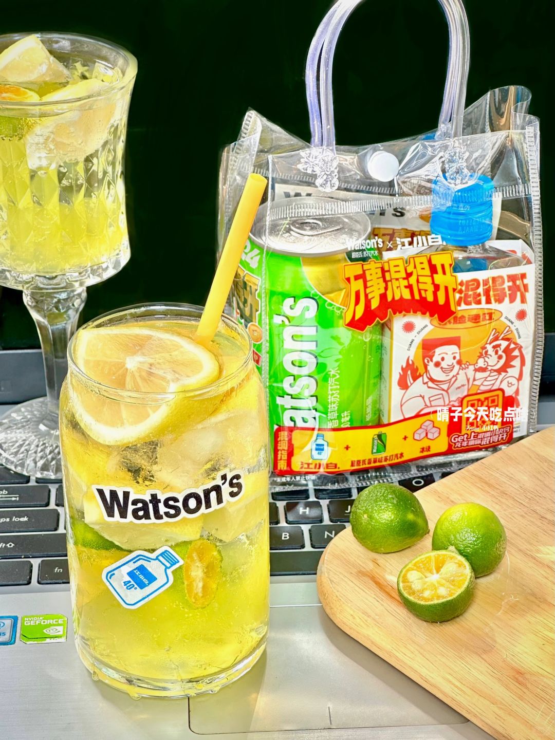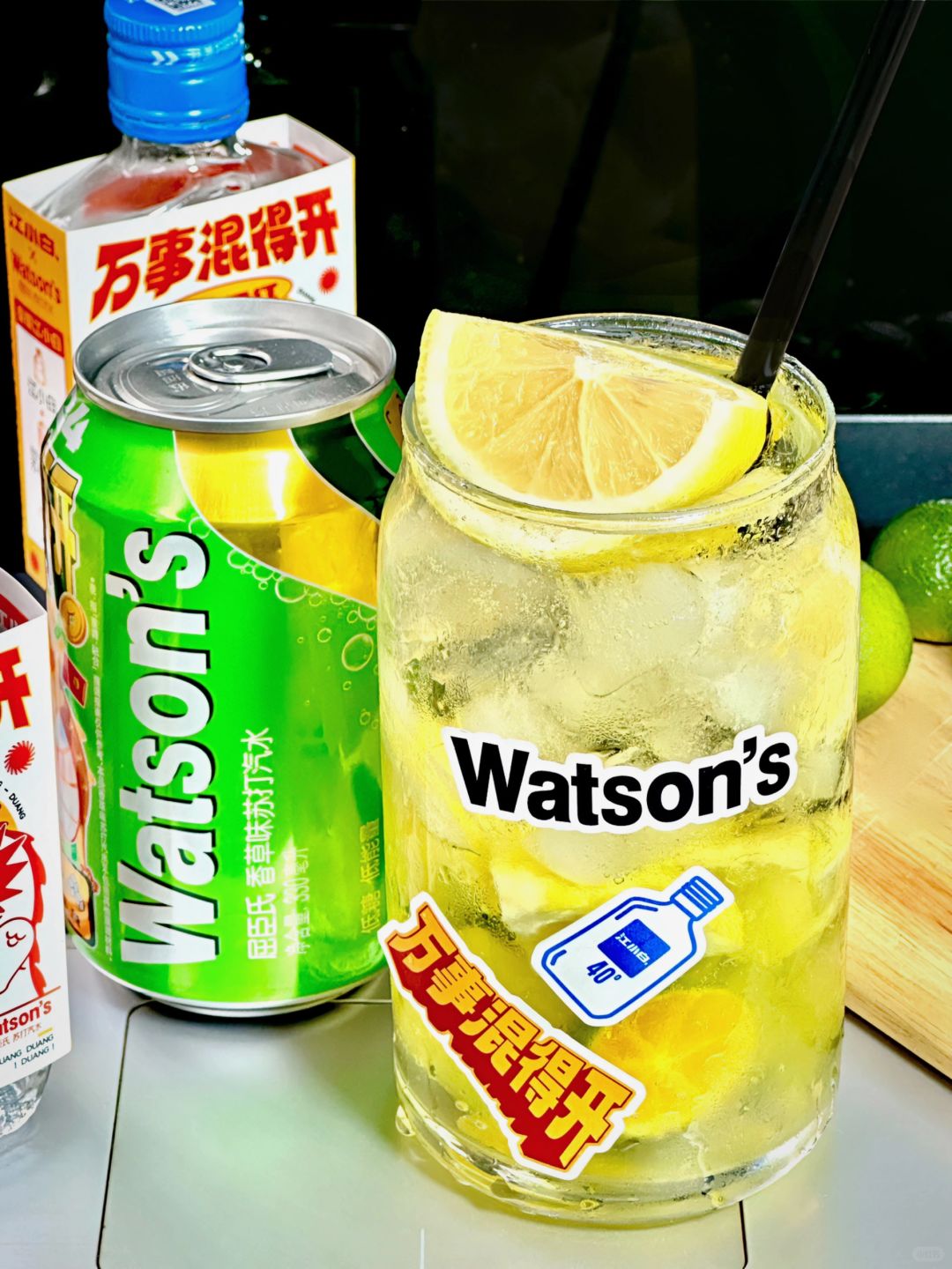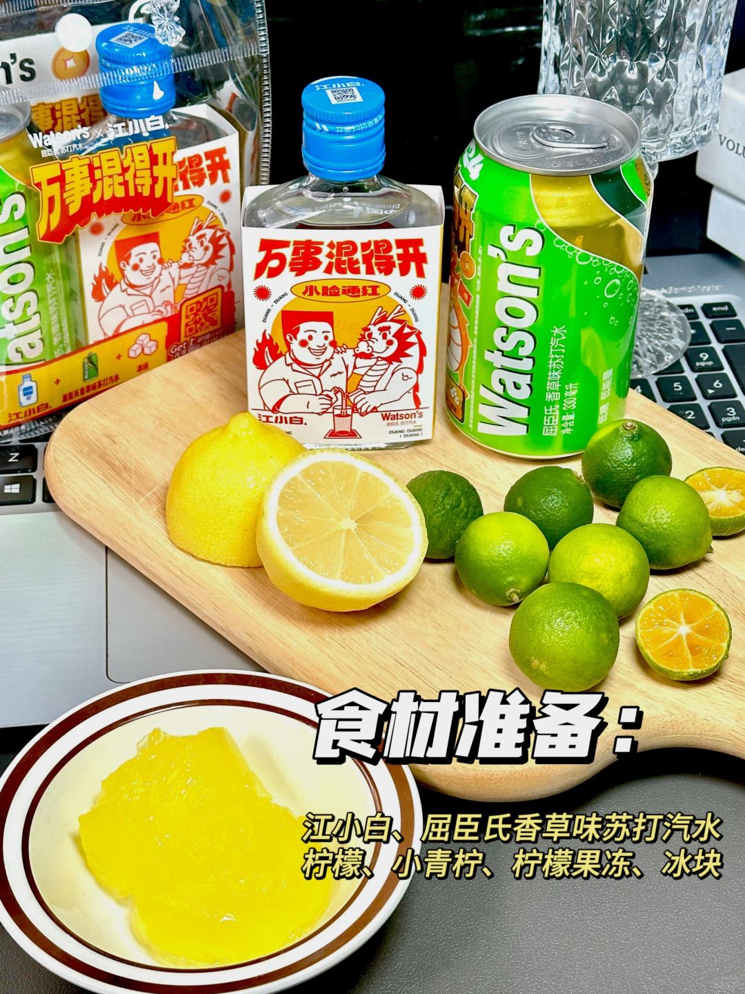 ✅食材准备:柠檬、小青柠、屈臣氏香草味苏打汽水、江小白、柠檬冻冻