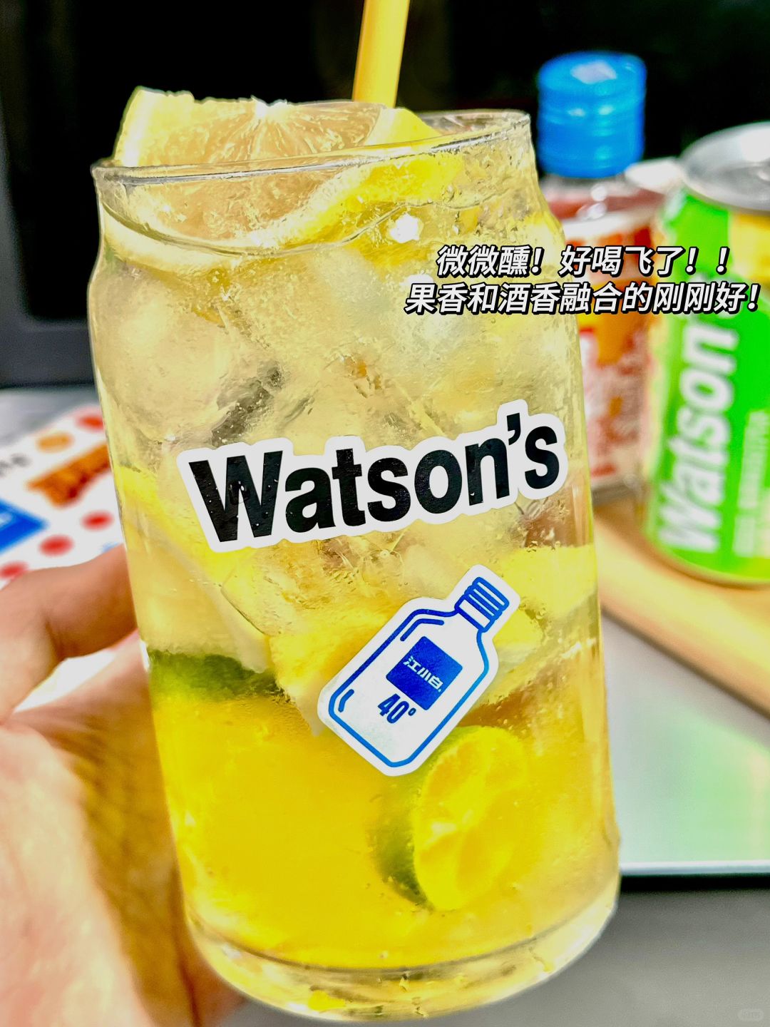里面自带屈臣氏香草味苏打汽水和江小白🥂不愁搭配啦!还有联合贴纸,特调完成后,贴在杯上💕别提多有氛围感了!喜欢微醺特调的姐妹快试试!