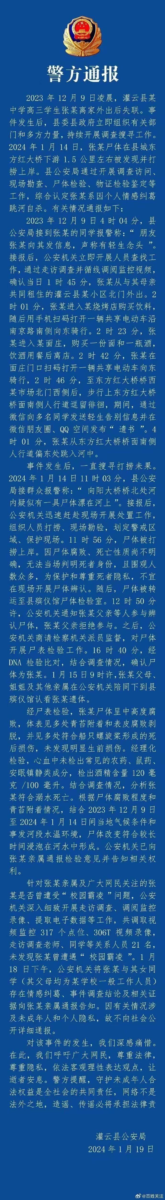 网络是无法追寻的真相,靠直播也不可能讨还公道,最终还得走法律程序,这一点事实难道不清楚吗?男孩是在2023年12月19日投河的,在2024年1月14日被河中发现捞出来的。这么长时间,尸体肯定已经高度腐烂,按照我国法律的相关流程,确实公安部门需要先做尸检,排除刑事原因之后才能交还给家人。公安机关也曾张某父亲等人参与辨认尸体,张某父亲拒绝参与。之后,公安机关商请检察机关派员监督,最终确认尸体为高三男生张某。
