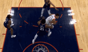 文班一次进攻把恩比德干蒙圈了,恩比德整场把文班干蒙圈了