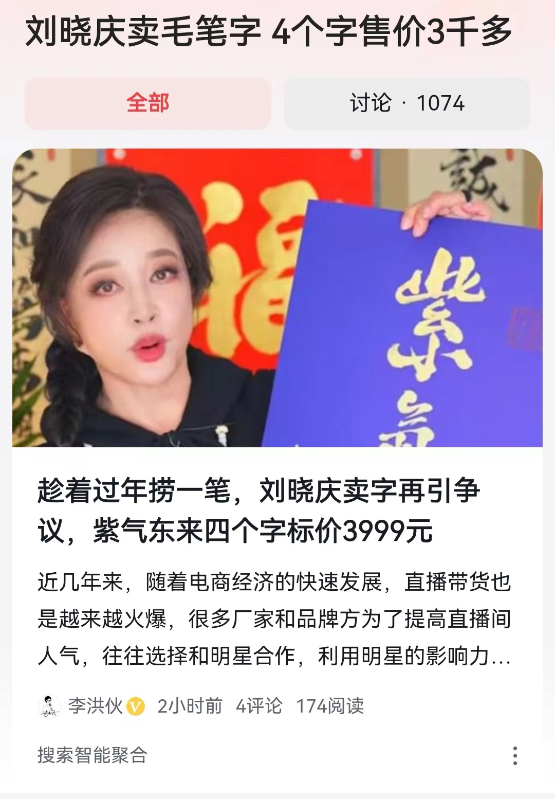 #刘晓庆卖毛笔字 4个字售价3千多#还好刘晓庆是直播卖字,而不是直播卖货。估计品牌方也思考过,直播卖货的受众应该都不是刘晓庆的粉丝。基本上他的粉丝应该都是在55岁加以上啊,所以在这种情况下,直播卖字可能更加的靠谱,卖得出去就卖得出去,卖不出去就卖个热闹呗,只要能让民众还能记得刘晓庆就行。