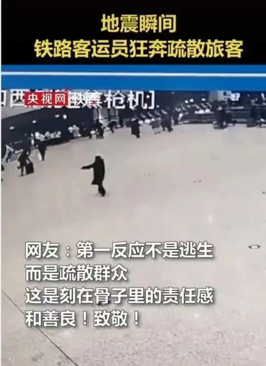 地震瞬间铁路客运员狂奔疏散旅客# 这就是我们需要疯狂夸赞的“逆行者”!在地震发生的时候,新疆阿克苏站客运员卫萍萍,在感受到地震之时,他的第一反应不是迅速向出口跑,跑到空旷的火车站广场外面,而是迅速向客运大厅奔去,一边狂奔,一路呼喊,让在火车站候车厅的旅客赶快疏散,赶快出去!他太值得我们进行夸赞了,那之后火车铁路部门要对他进行嘉奖和表扬!
