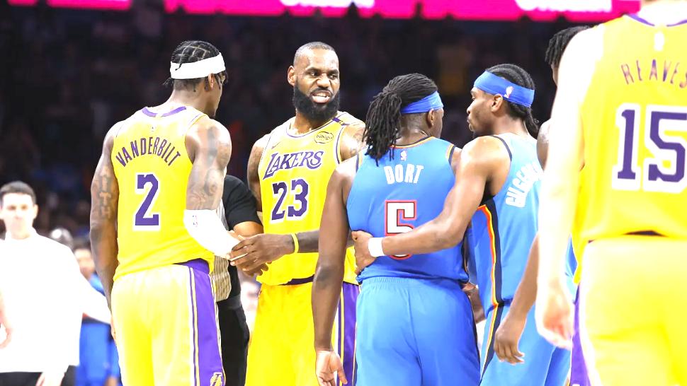 聊完附加赛,再说说西部前六的格局,这也直接决定了季后赛首轮的对阵形势。雷霆5连胜后,基本锁定西部第一的位置,马刺则稳居西部第二,湖人在东里组合常规赛报销后遭遇二连败,被掘金反超,掉到了西部第四,按照目前的走势,他们后续甚至可能还会被火箭反超,掉到西部第五。这样一来,西部1-6的最终排名,大概率就是雷霆、马刺、掘金、火箭、湖人和森林狼,对应的首轮对阵,就是雷霆打快船,马刺打太阳,掘金打森林狼,湖人打火箭——这两组对决,看点十足,但也充满了遗憾。