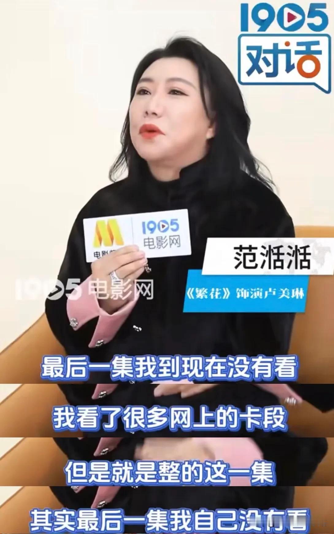 范湉湉:卢美琳眼睛上有条疤,这件事情,给了我很大的启发! 范湉湉刚开始不知道怎么入戏?没有剧本,不知道卢美琳从哪儿来,有什么故事,她就是一个老板娘。直到卢美琳试妆的时候,眼睛上有条疤,这条疤让卢美琳有了故事。 卢美琳的故事,王家卫导演只有一件事情明确告诉过范湉湉,那就是卢美琳和杜红根爱过。至于爱不爱金老板、对小江西是什么样的态度,要怎么当这个老板娘,导演让范湉湉自己去领悟。 每当她不知道这个人物线该如何发展的时候,她就会去问导演,然后导演就会反问她:你觉得呢?就是这样你问我、我问你一起讨论出来的。 范湉湉说自己身上有过不少标签,只是这一次,因为《繁花》,她成为了卢美琳。她遇到卢美琳何其幸运。 以至于到现在,因为不舍,她都还没有看过《繁花》最后一集!