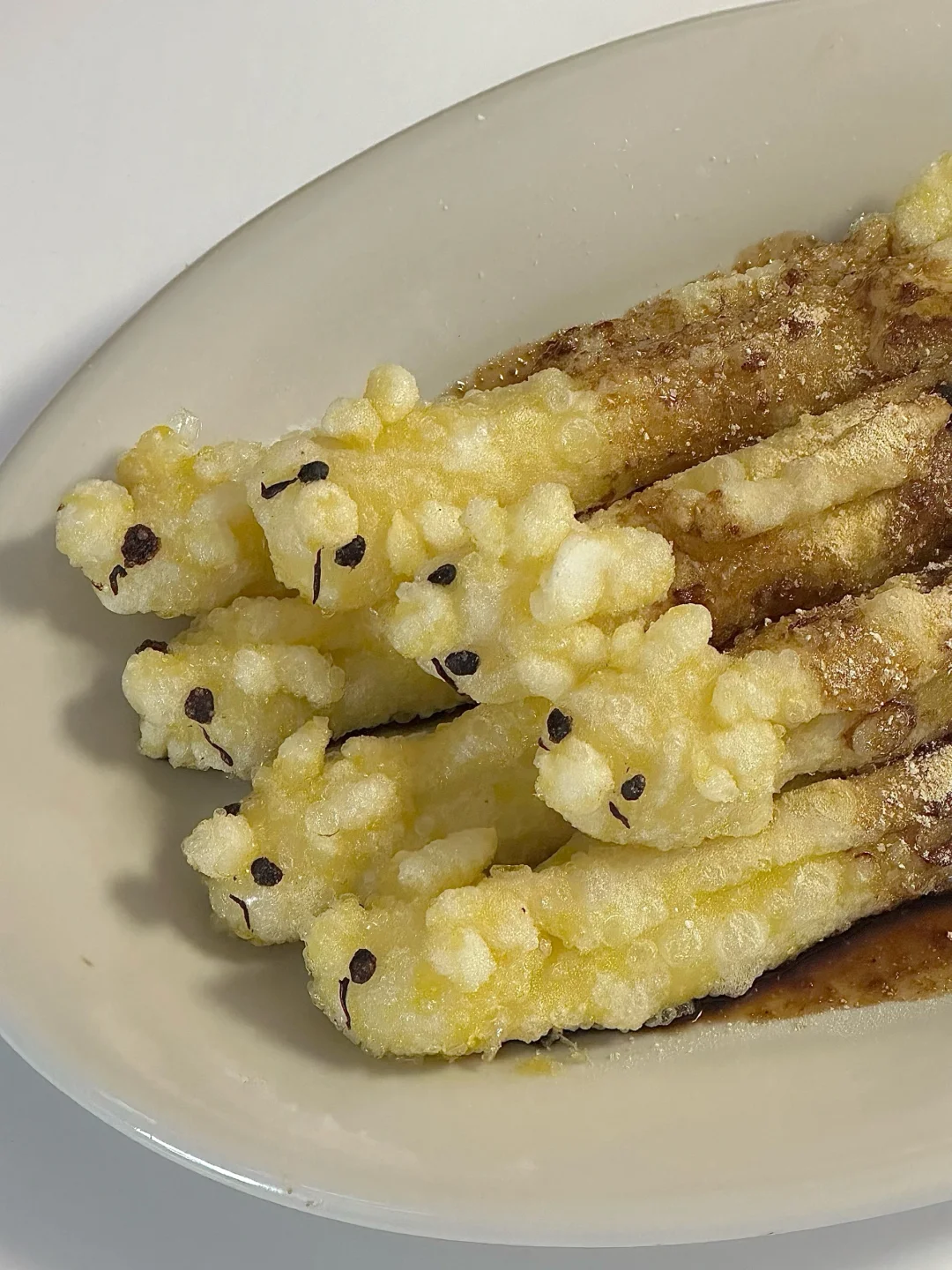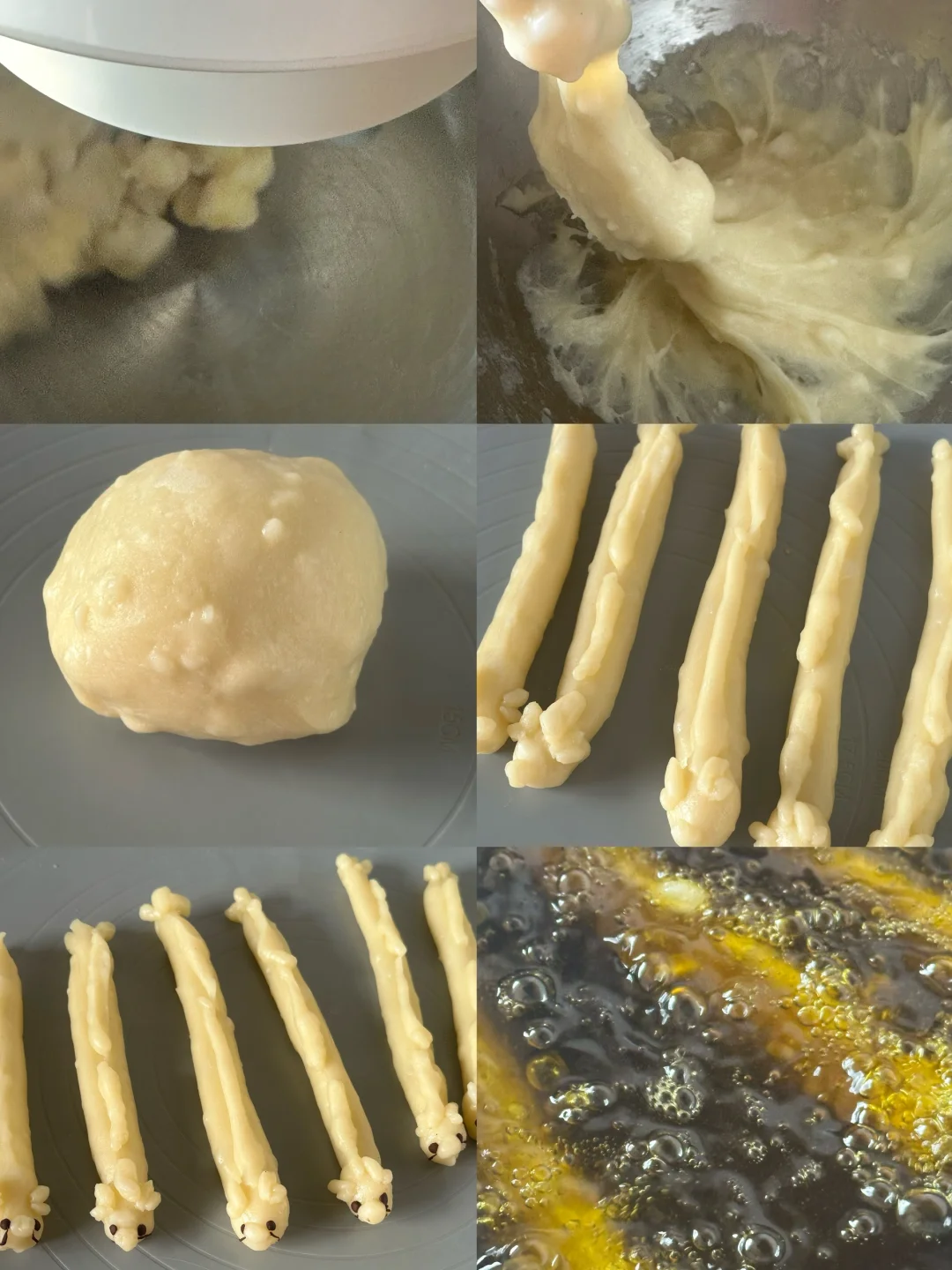 1.年糕蒸软揉成团(可以借助厨师机),分份搓成长条