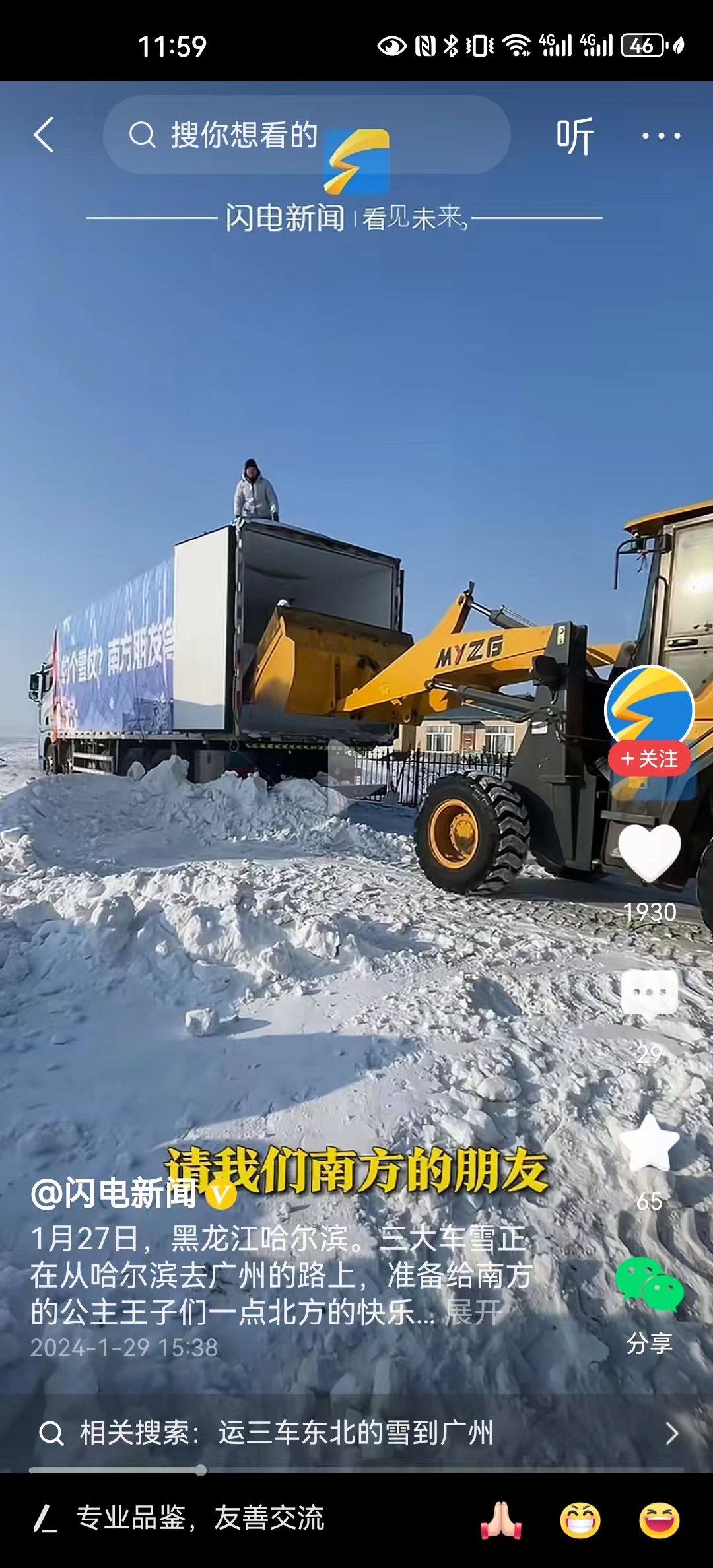 为了让广州的小朋友能够玩到雪,哈尔滨决定用三大集装箱的雪到广州。在一定程度上,哈尔滨真的能搞事情,有的网友说还不如搞一个造雪机送到广州呢!德先生特别好奇的是,在哈尔滨有哪个部门或者哪家公司会接收这三大集装箱的雪呢!大家会不会很好奇呢?