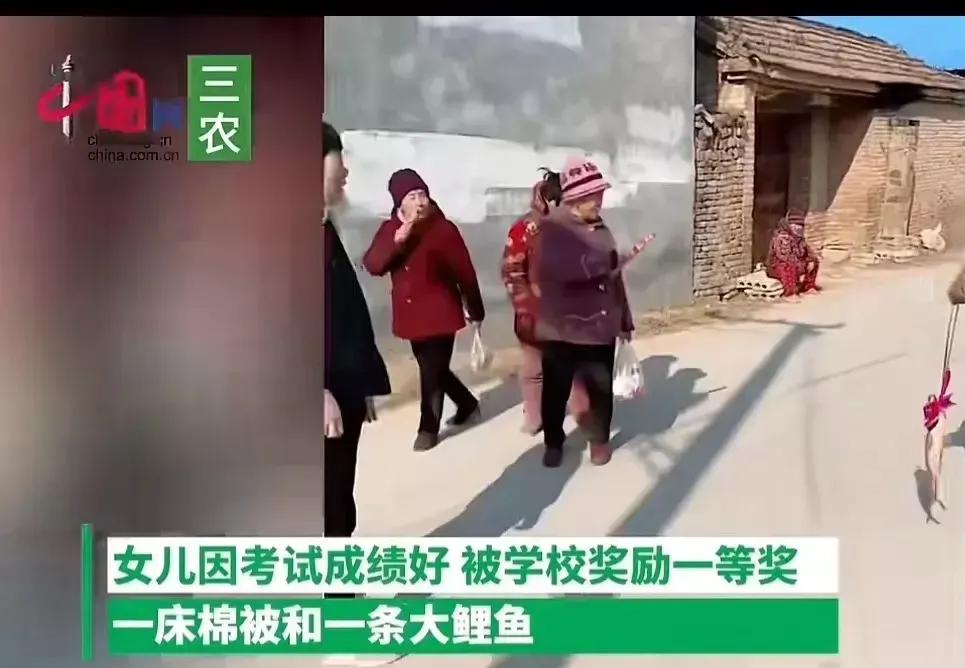 看看人家这闺女,羡慕嫉妒恨啊!看看这个父亲,也是羡慕嫉妒恨啊!有人说这个父亲太嘚瑟了!女儿被学校奖励一床棉被和一条鲤鱼,爸爸全村炫耀,迟迟不回家!转了一圈又一圈,转了一条街又一条街,网友说得更气人:我的孩子要是能有这成绩,我光腚蹲村口三天! 哎哟我去,这就是真实的父母,恨铁不成钢的父母。 要是我儿子取得这样的好成绩,我不光腚在村口,多么不文雅,我锣鼓喧天,鞭炮齐鸣行不行? 看看人家的女儿,成绩优秀,几乎包揽了班级一半的奖状!看看孩子手里的奖状就知道,一大摞,让人只有羡慕的份。 问题是人家还有物质奖励。 学校对于优秀学生还有特别的奖, 一条厚厚的被子,一条鲜活的鲤鱼。 想一想,爸爸妈妈盖着被子,吃着鲤鱼,心里多么幸福啊! 原来,好孩子真的是人家的。 但今年,我也知足,儿子学习进步了。 语文77,英语88,数学83.5。 在他们班这样的成绩十几名。 这已经是大进步,我很知足 知足常乐。 和人家比,咱们的孩子是最差的。 和自己的昨天比,进步就可以。[捂脸][捂脸]