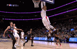 哈登威少又上演“登威连线”,威少也兴奋地吃一T! 北京时间2月3日,快船与活塞的比赛进行至末节8分40秒,哈登与威少又上演“登威连线”,不过,威少由于拍篮板也吃一T。 图一:哈登右侧弧顶持球,威少经典的左侧空切,哈登送高抛,威少空接重扣,经典的登威连线。 图二:不过,少爷太兴奋,扣完篮后右手拍了一下篮板,裁判也给他一T,哈哈。
