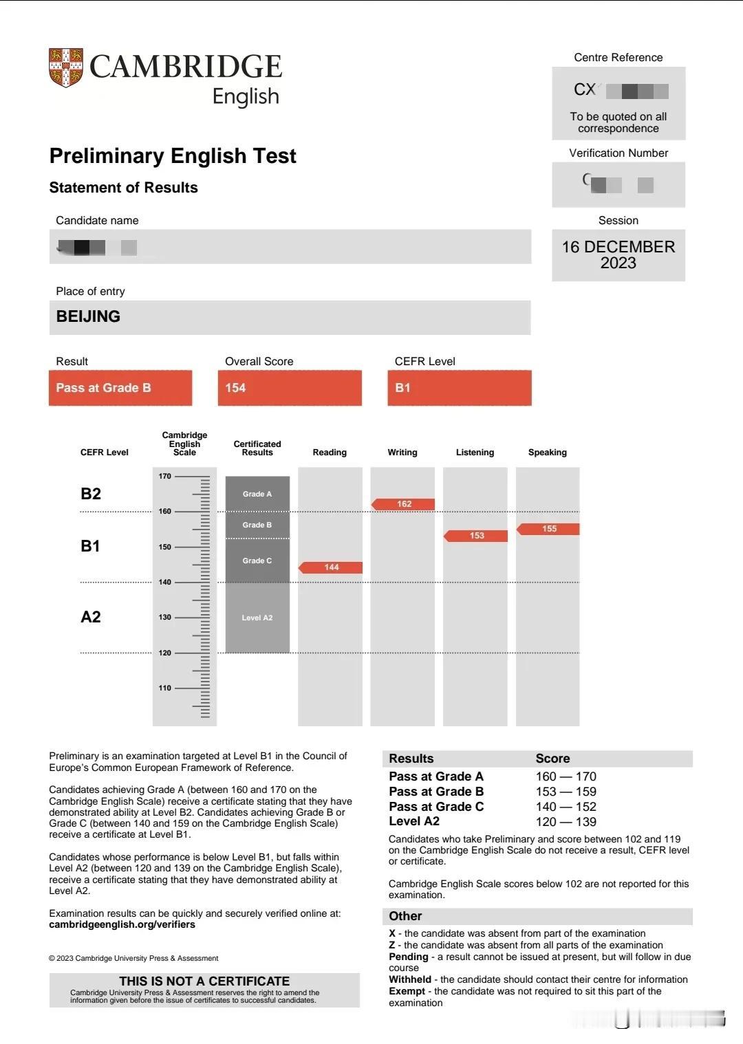PET成绩出来了,太打脸了[捂脸][捂脸][捂脸]。出考场的时候,娃说考砸了,可能要掉到优秀了,娃爸还说娃的话要反着听,我还盼望着娃爸的话能灵验呢。心想无论如何,俩娃至少有一个能卓越吧。看来我还是太乐观了,两分之差,无缘卓越了,俩娃都是优秀[捂脸][捂脸][捂脸]不过说实话,虽然这次没能卓越,但我已经很知足了。因为娃在考试前一天感染了甲流,又不想错过考试,娃是发着烧进的考场,能考到优秀,已经很难得了。更难得的是娃的阅读部分,满分170,娃竟然考了169。无论如何,祝贺我的娃们,没有报任何培训班,完全自学,3月份KET卓越,12月份又带病拿到了PET优秀,我已经很知足了。接下来备战FCE,想要跟我们一起学习的家长,可以关注我,育儿路上咱们携手同行[玫瑰][玫瑰][玫瑰]
