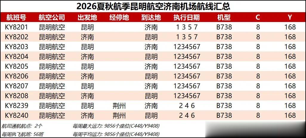 10 昆明航空 本航季昆明航空加密了每日第3班和每日第4班济南-昆明航线,昆明航空济南-昆明航线密度也创下了历史新高。