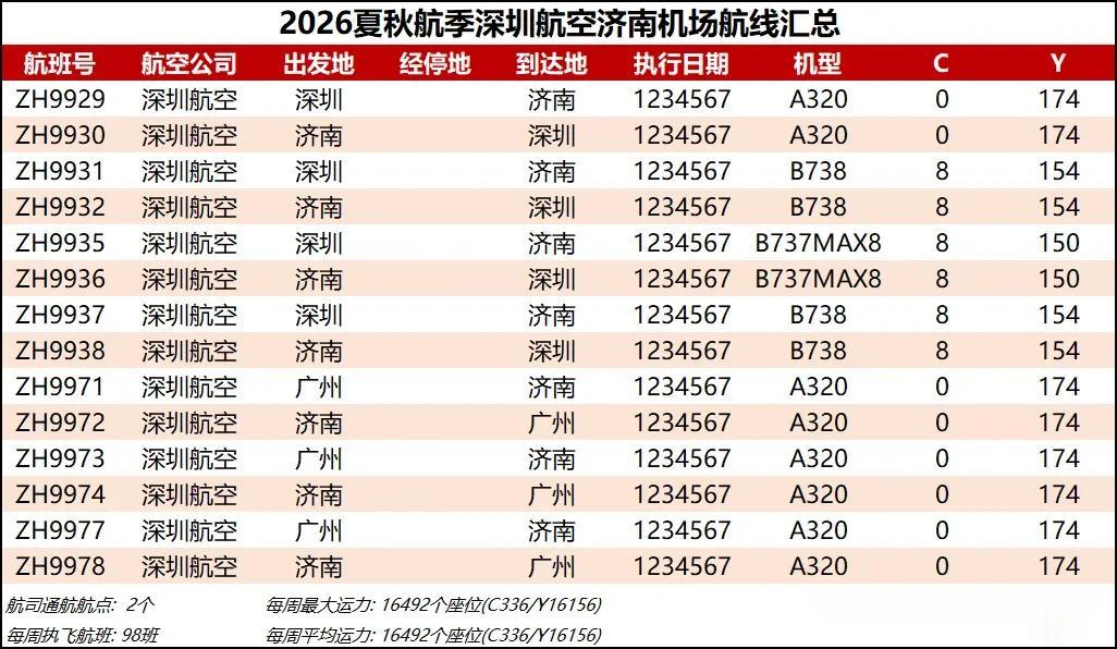 07 深圳航空 深圳航空新航季济南-深圳航线恢复到每日4班,济南-广州维持每日3班,也算是回到历史高位了。