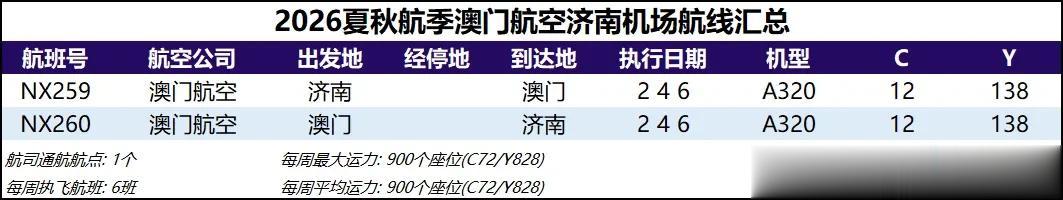 28 澳门航空 澳门航空本航季继续开行上一航季开通的济南-澳门航线。