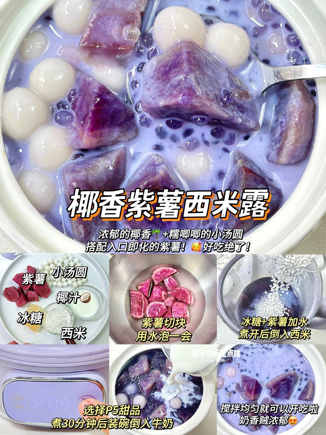 🌈准备:椰汁+紫薯+冰糖+西米+小汤圆