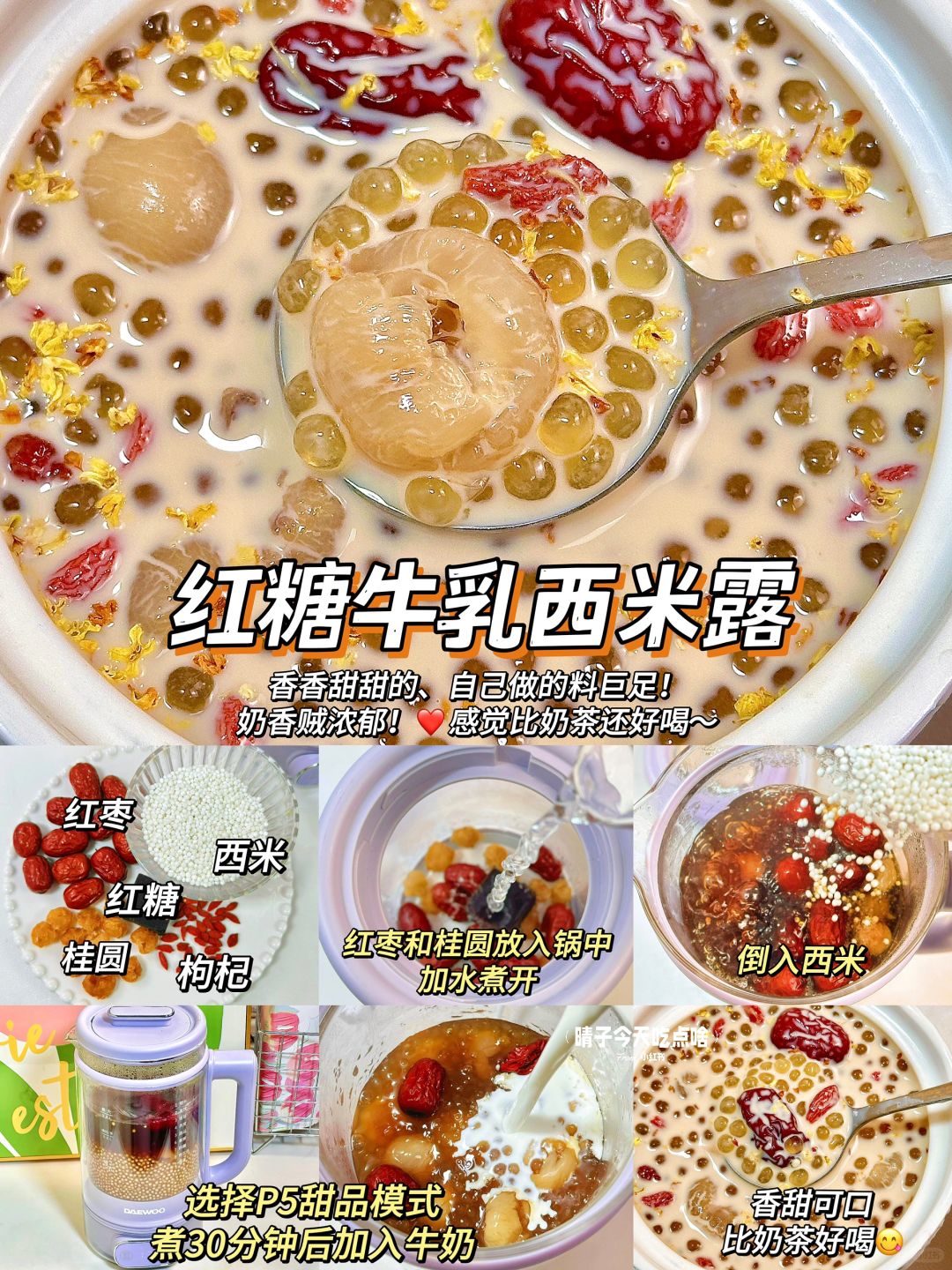 🌈准备:红糖+牛奶+西米+红枣+枸杞