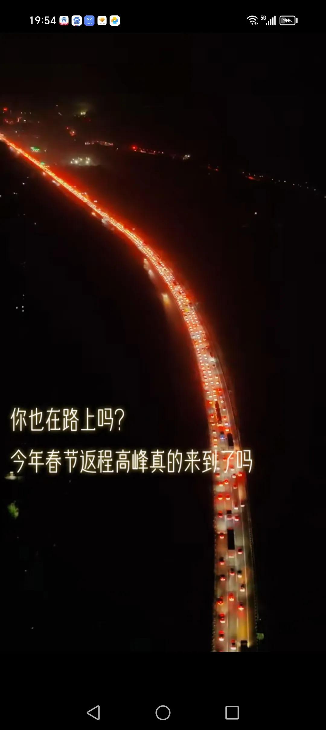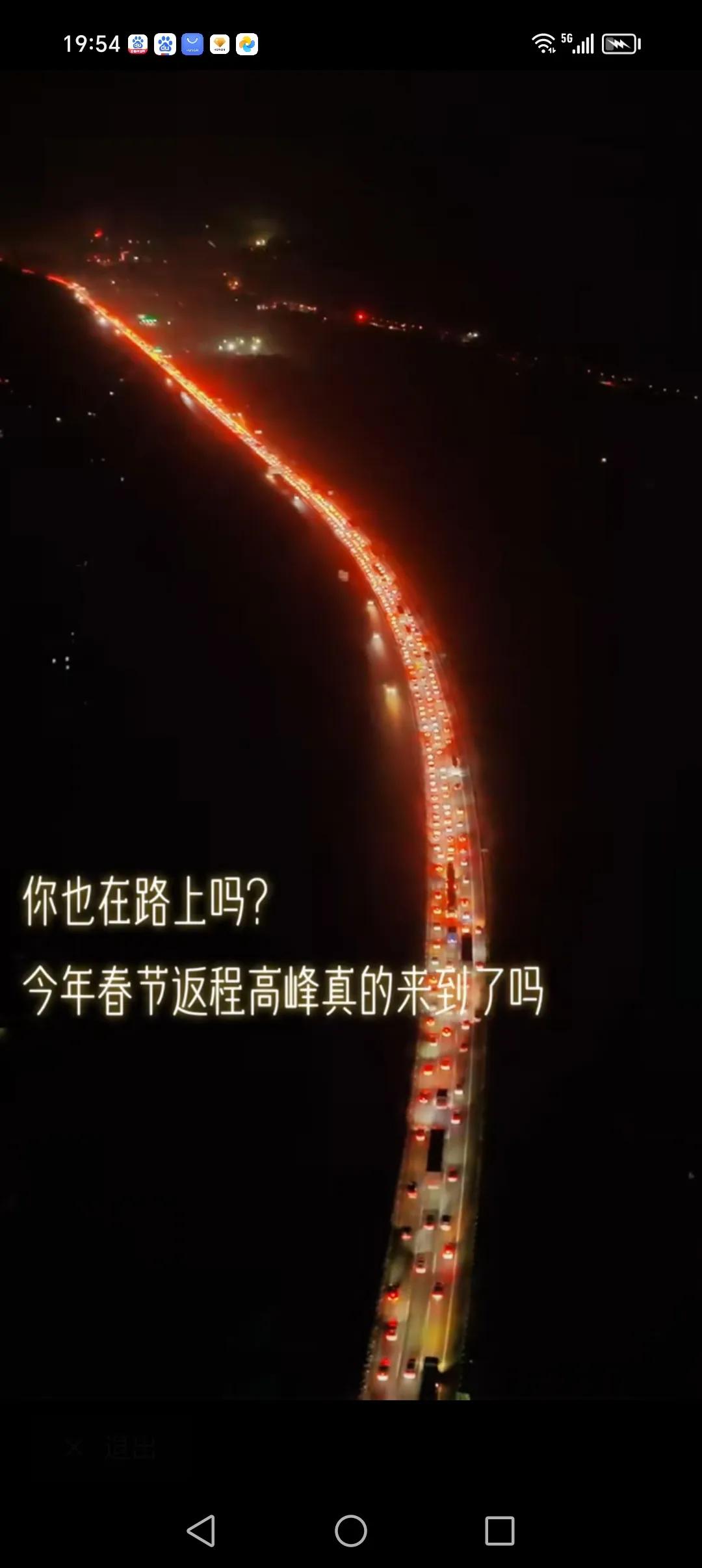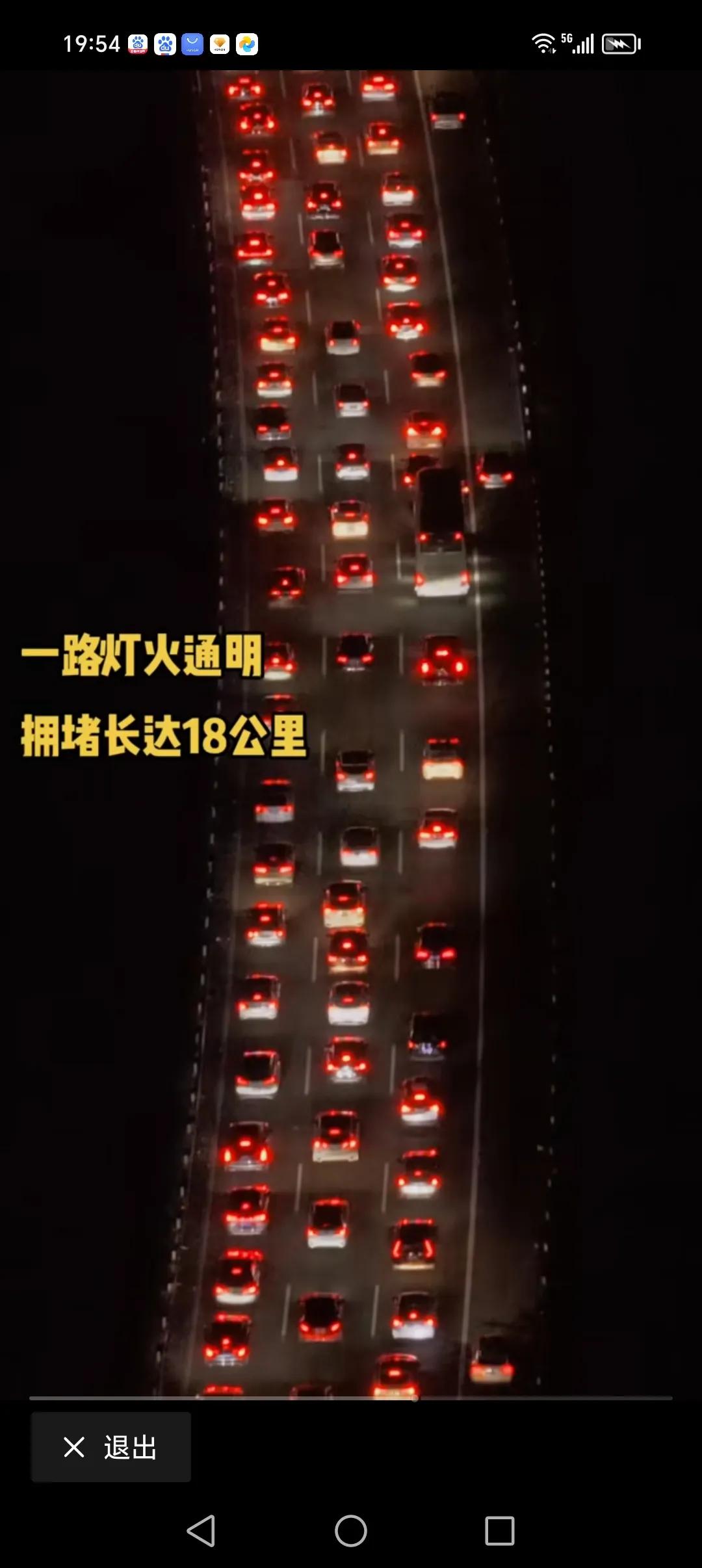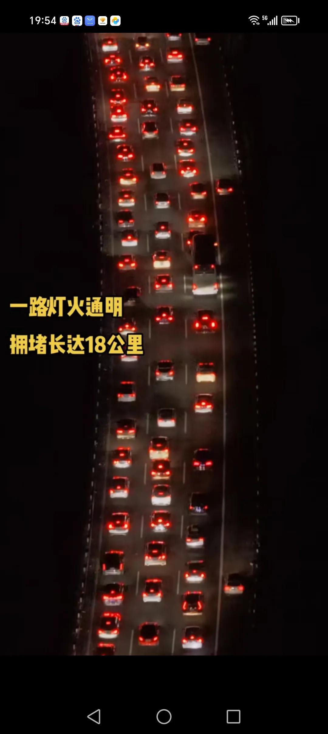 堵!堵!堵!回老家过年被堵在高速一天一夜,这返程回小家,这又是堵堵堵,简直要血命了,大年初四从家里出发,大年初五还在高速上蜗牛爬,看看这一路灯火通明,看看这堵的水泄不通,拥堵长达18公里。 问题是没有车祸,没有恶劣天气,没有雨雪,就是三个字,堵堵堵。 你在路上吗? 这返程高峰真的开始了吗?