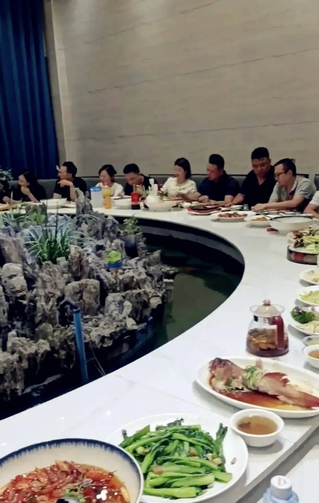 这种局我经常吃,公司生产部管理层每个月一次,基本都是这种大桌,能坐20来个人,也就单纯的喝喝吃饭