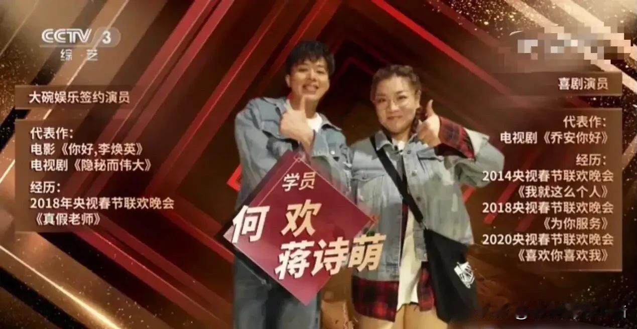 贾玲的公司“大碗娱乐”,有7位男艺人,没想到这一位,竟然是贾玲从“开心麻花”挖过来的! 何欢:1989年,辽宁省,因为喜欢表演,初中毕业后,就开始学习表演,梦想考入中央戏剧学院,但考了两年都没考上。最后选择了东北师范大学的人文学院,没想到入学那年,学校开设了表演系,他就转了专业。 大学毕业后,何欢开始了北漂。2013年,开心麻花招演员,他面试成功,开始出演各种话剧,一演就演了3年。但开心麻花老演员太多,沈腾、马丽、常远、艾伦等等,他作为新人演员机会不多。 直到在一档喜剧节目中,何欢和贾玲相识,贾玲非常欣赏他的才华,便邀请他加入自己创立的都是新人的大碗娱乐。 2016年,何欢签约大碗娱乐,之后,贾玲带着他参加各种综艺节目,为无数的喜剧作品主演。在2018年,贾玲带着他,和张小斐、许君聪上了春晚,表演了小品《真假老师》 2021年,出演《你好,李焕英》; 2024年,中央电视台春节联欢晚会;