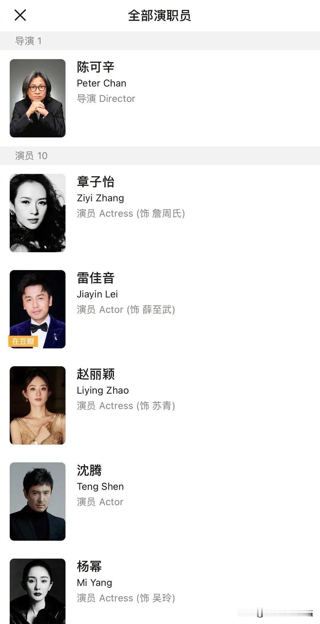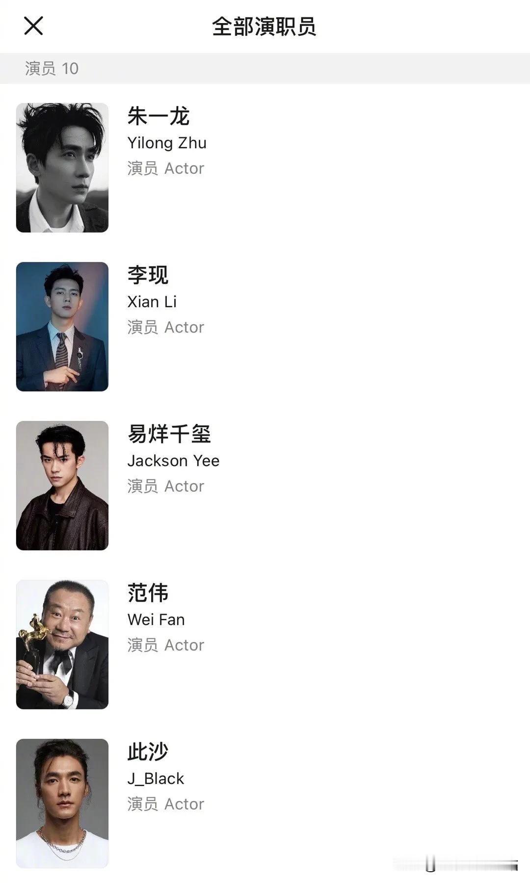 《酱园弄》声明:主演排序,以其所饰角色的出场顺序为准! 我个人看电影,不会在意什么番位,杨幂和赵丽颖搭一部戏了,还是很期待的!主要两位女演员都很喜欢,有着不同的个人魅力。 豆瓣更新了演员表,新增:沈腾、朱一龙、范伟和此沙。这阵容还是挺强大的!