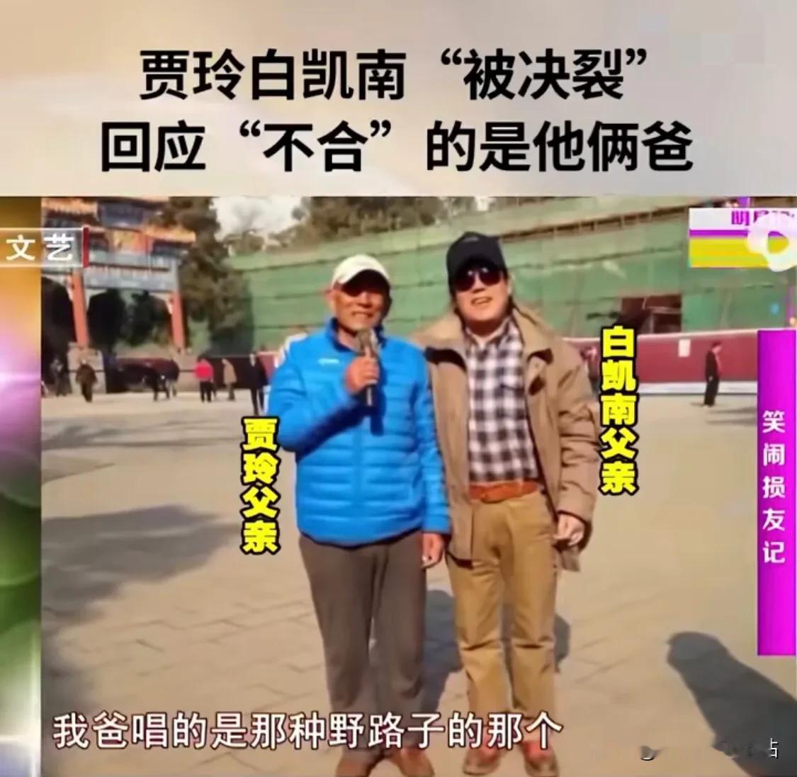 贾玲回复与白凯南的“决裂”! 贾玲:我跟白凯南没有不合,但我爸和他爸是真的“不合”! 贾玲的爸爸很喜欢唱歌,但没正经学过,是那种野路子,但白凯南的爸爸是唱美声的。两位爸爸经常约在公园里练习唱歌。 贾玲说只要有两家的聚会,吃饭过程中,两位爸爸就会你一首、我一首的争相唱歌,谁也不服谁,就想把对方比下去。 哈哈哈!两位爸爸能成为唱歌搭子,开开心心过晚年,挺好的!