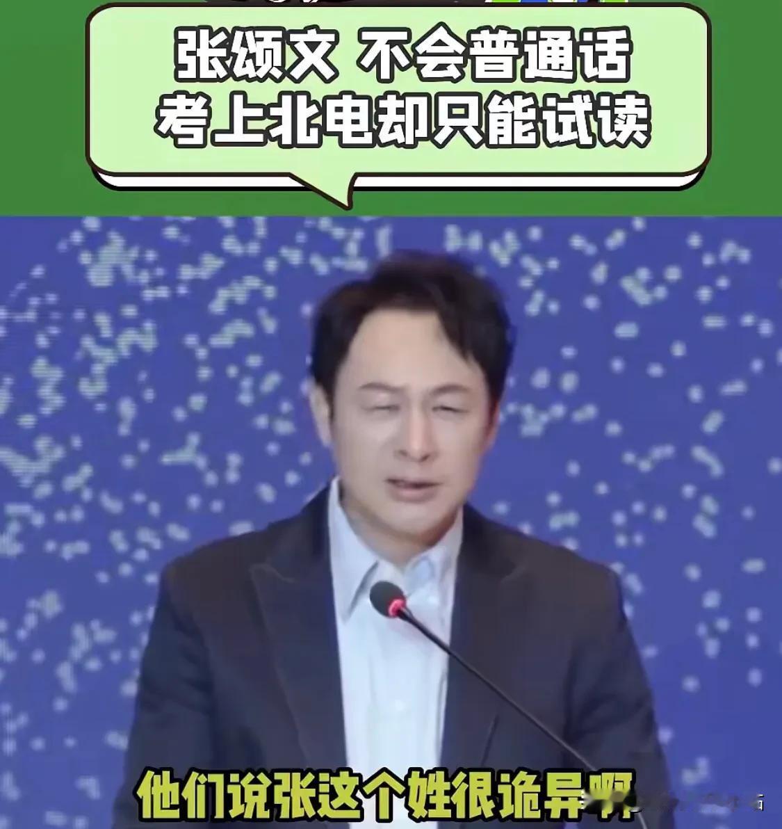 张颂文:“我考北京电影学院的时候,在考场出尽了洋相。” 张颂文考试的时候,做自我介绍说:“各位老师好,我姓脏!” 老师们听后说:“脏”这个姓很诡异啊! 张颂文:“不会啊,很多人都姓脏的,比如脏国荣!” 张颂文因为是广东人,普通话不好,考北电得到了一个试读生的机会,也是全北电唯一一个试读生。 北电表演系说:严格来说,你的台词,我们是不可能让你进的。但是我们想做3个尝试: 1、我们没有招过广东人; 2、我们没有招过年纪这么大的学生; 3、我们从来没有见过有这么丰富人生阅历的人; 所以我们想做个尝试,我们先不给你学历,你先试读,半年以后我们再看看。 之后,老师告诉张颂文第一学期结束,他需要参加中国普通话等级资格证考试,如果拿到乙级一等,就可以让他成为正式学生。 于是,张颂文每天含石头练习说普通话4个小时,最终拿到了证书。大学期间,表现优异,最终留校成为表演助理。 这成为他25岁考北电,相当自豪的事!