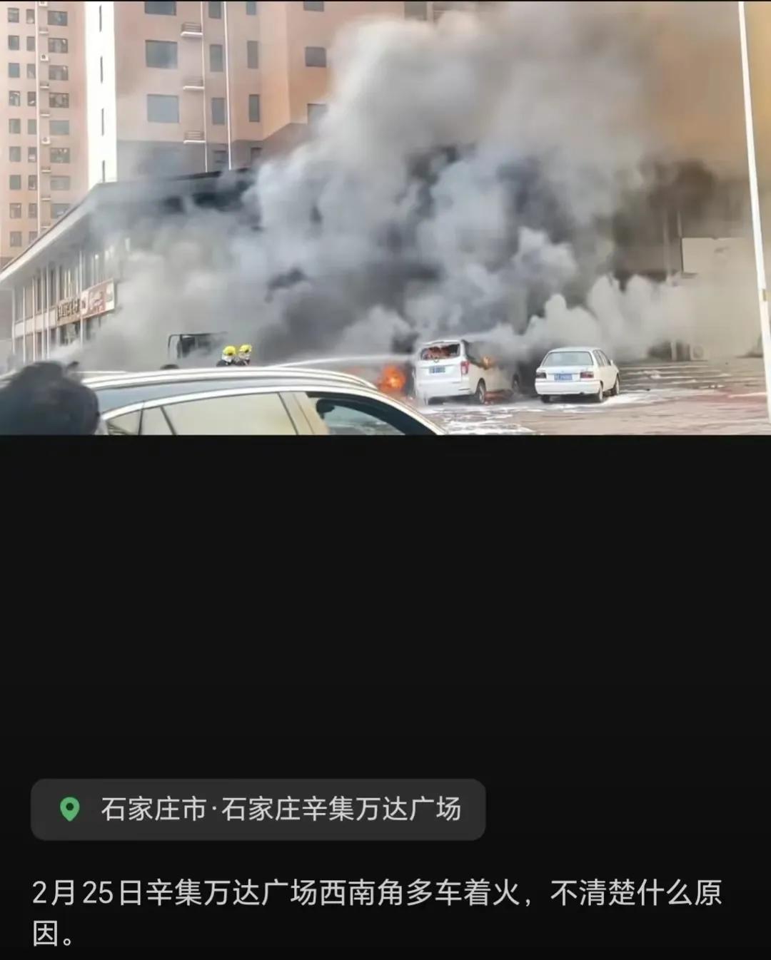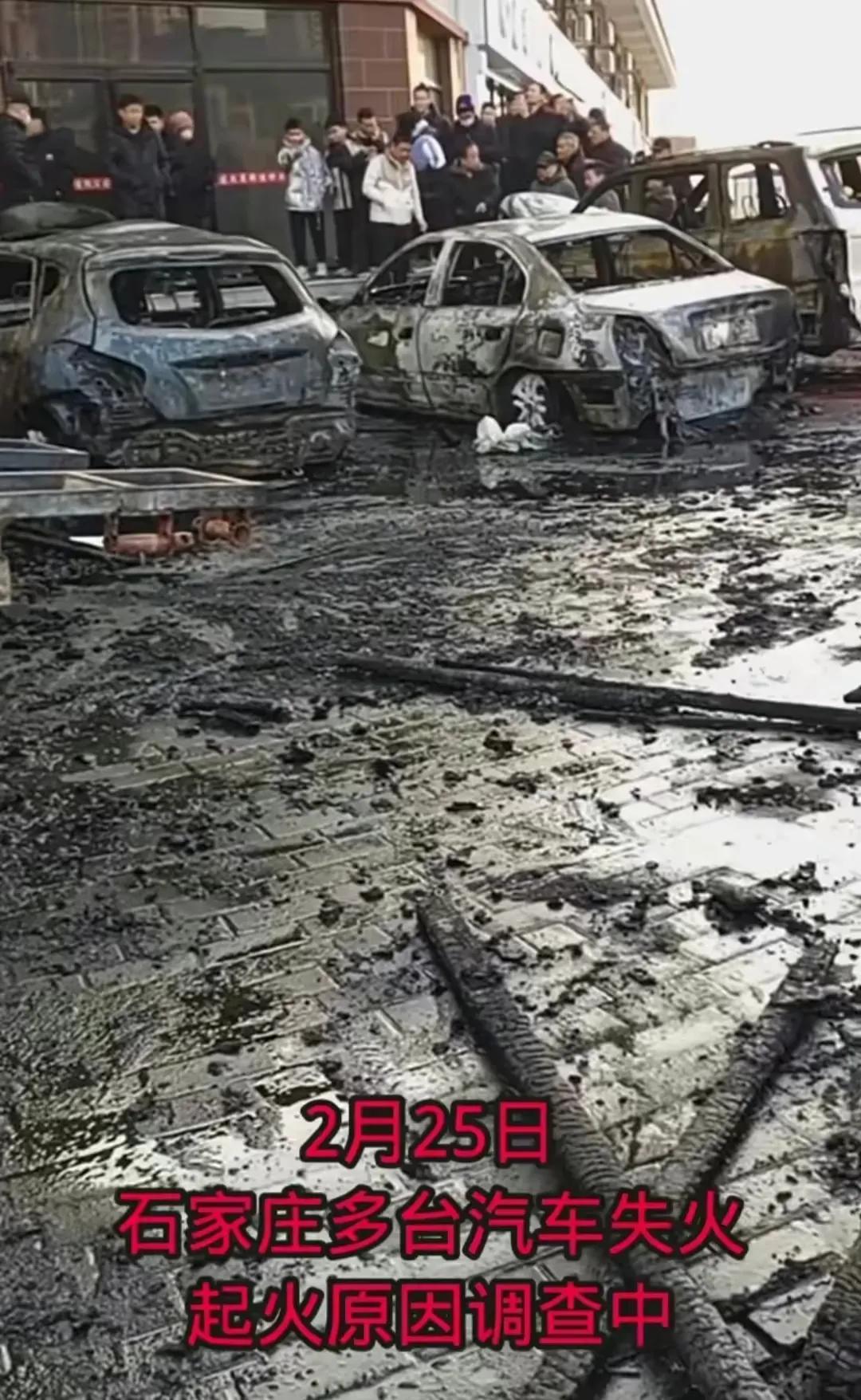 突发!河北石家庄辛集市突发大火,大火燃烧了五六部汽车,汽车都变成了汽车空架子,面目全非,令人感到心疼又害怕。 2月25日,河北石家庄辛集市,路边多辆车被烧成空架。 视频中,汽车燃烧的时候,大火很大,烟雾很浓,空气中飘荡着烧焦的味道。 据旁边的商户说,疑似一部拉泡沫的车突然起火燃烧,后来又烧到了其他的车,不知道这商家说的是不是真的。 附近商家说:五六部车都全部烧完了了,已经全部清场了。 商户说清场,是这五六辆都烧完了,只剩下一空壳子。 图片中,一片狼藉,地面都被大火和浓烟熏的乌黑八漆的。 一辆又一辆的汽车,狼狈的堆在那里,很多汽车配件散落一地。 令人看着难过又心惊肉跳。 有知情者透露:先是泡沫车烧了,泡沫车燃烧后,点燃了旁边有几个汽车,它们都一起就烧了。 不幸中的万幸,起火的时候,车里都没有人。 幸亏没有人,如果有人又不知道会发生啥事情。 到底啥原因引起泡沫车起火? 现在,事故原因正在调查,我们不传谣不信谣,等待官方消息。 这几天,贵州山火,南京的楼起火,黑龙江佳木斯楼起火。 一桩桩一件件,令人恐怖。 山烧,楼烧,车也烧,大火无情,大家要注意安全。