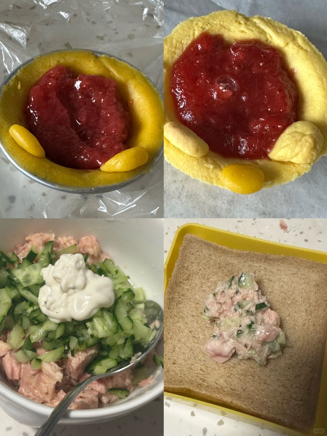 吐司、黄瓜、吞拿鱼罐头、沙拉酱