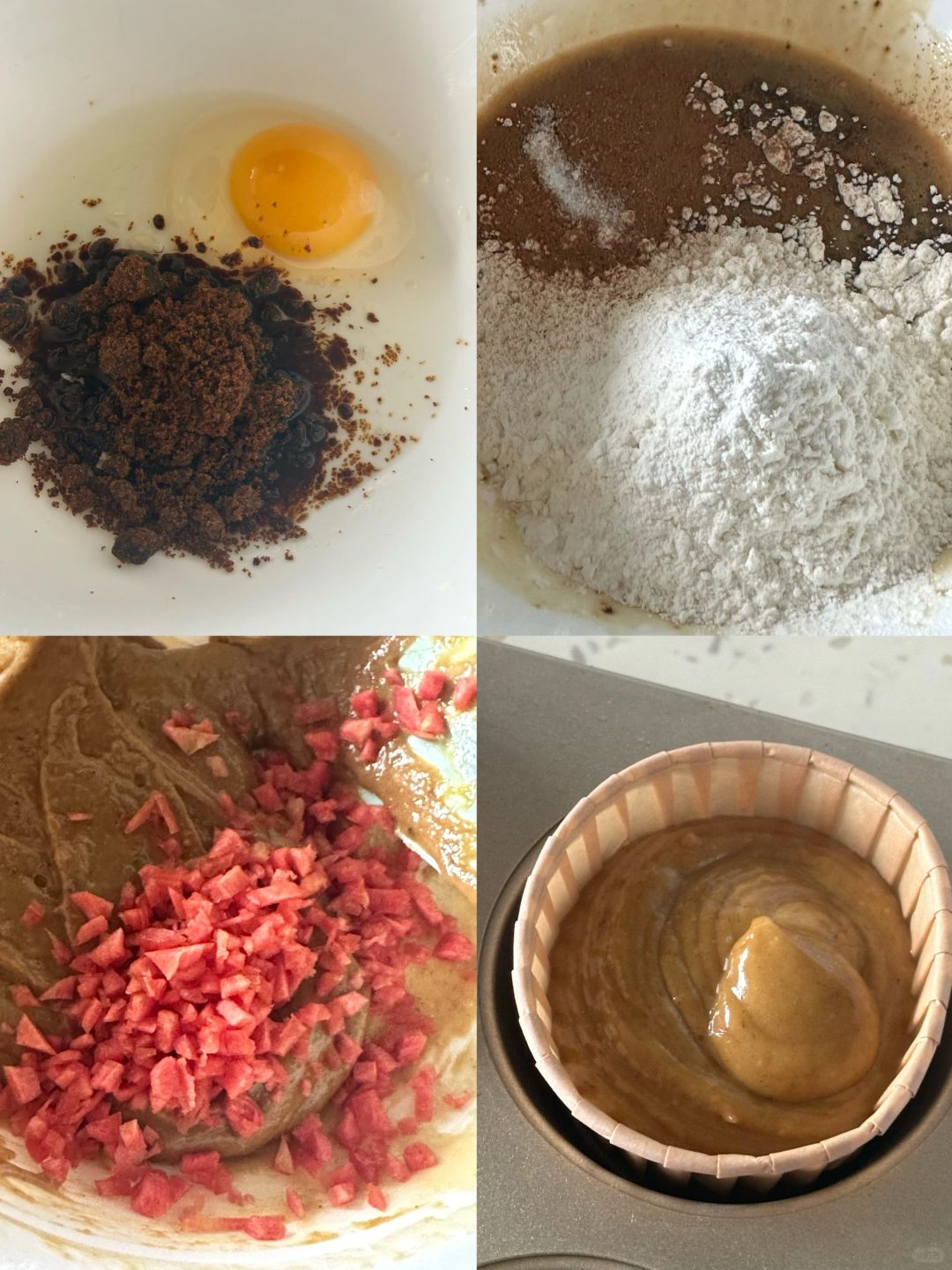 2.装入裱花袋挤入蛋糕杯,180度烤20分钟