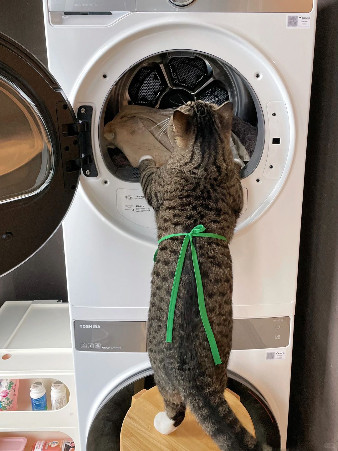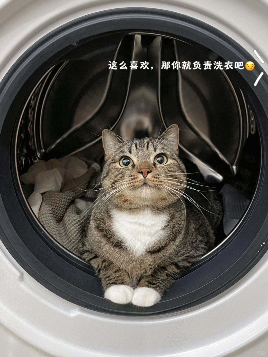 像平时咱养猫家庭洗衣最大阻力就是猫毛!但装了东芝玉兔2.0洗烘套装,这已经不是问题了!
