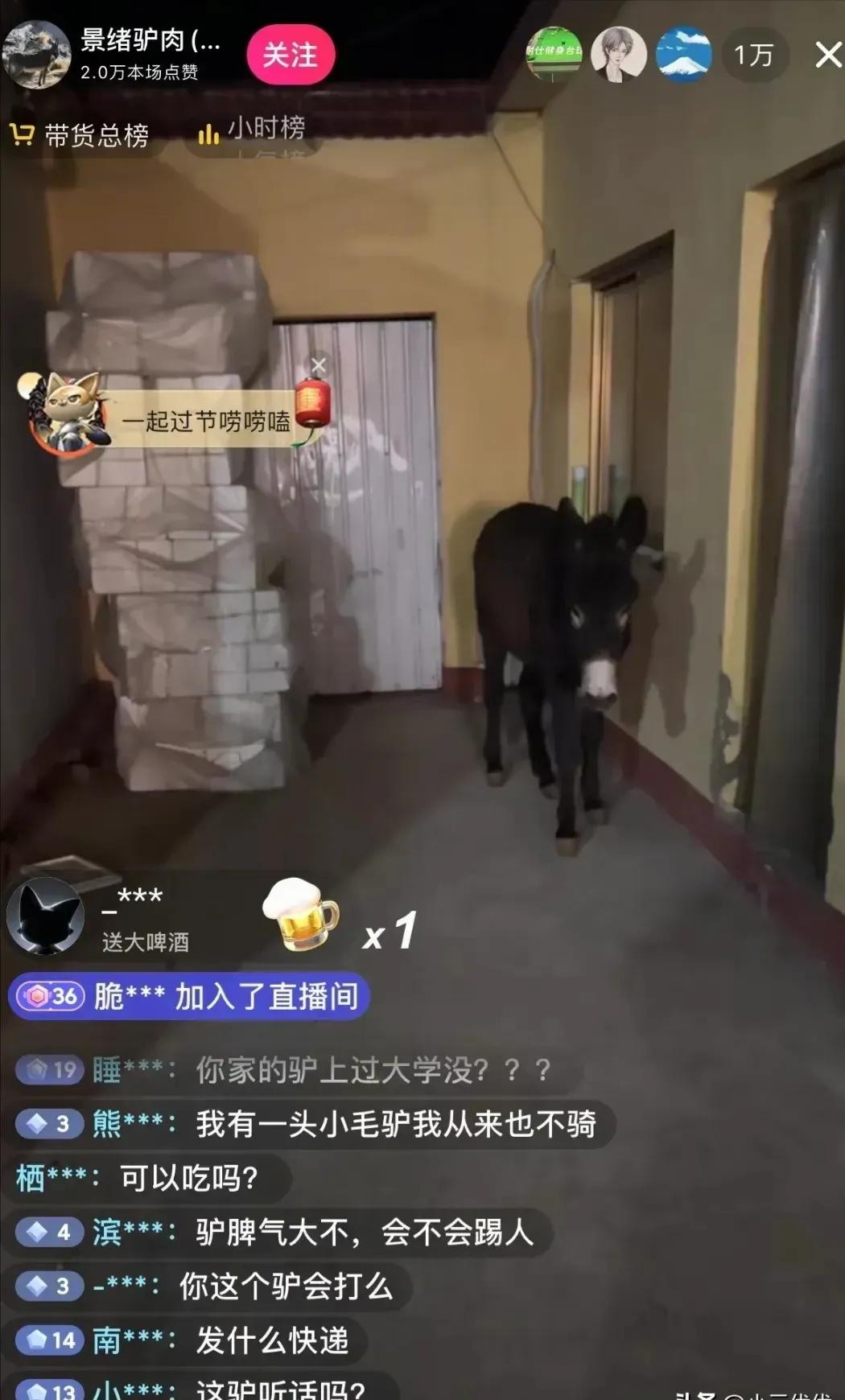 广西的网友买了山东网友一头驴,而且还是在直播间买的,因为广西没有驴,这买了一头驴,让网友们都乐死了,我觉得他们是第一次看见驴,所以才如此觉得好奇。 我是山东人,对于驴这个物种很熟悉,小时候家里就养着一头驴,用它拉庄稼,耕地,等于家里的大帮手。 我记得小时候赶集,就坐在驴身上的筐子里,左边一个筐子,右边一个筐子,都是左边我坐着,右边放一块石头。 现在,广西百色的陆大哥在山东小伙的直播间买了一头驴,网友们那是热议啊! 有网友问:你家这头驴上过大学吗? 网友:你们家驴踢人吗? 网友们说啥的都有,提的问题更是五花八门。 网友说的,这个驴应该是广西第一头驴,从前广西没有驴。 这个驴可便宜,广西大哥花了一万三千块钱,预付款一半,驴到货后付尾款。 视频中,这个驴不错,我们山东小伙子养的这个驴,驴膘不错,体重大约400多斤。 不知道大家有没有吃过阿胶,这阿胶就是用这驴皮熬制的。 阿胶可是好东西,营养品。 这广西买驴的陆大哥女儿以为她爸爸要上当受骗,没想到毛驴真的到货了,这可是大喜事。 我就想说,怎么?我们山东人这么不靠谱吗? 我们山东人善良实在。 这好客山东不是白说的。 所以,陆大哥买驴这件事,似不靠谱,实则非常靠谱的买卖,因为遇到了我们山东人。 现在,山东的大驴已经在广西美美的吃上草了,是不是很神奇。 我们山东卖驴的小伙子说呀:最近也不知道咋回事,咋这么多人过来他的直播间啊,都是奇奇怪怪的人,问一些奇奇怪怪的话,他们就是不买驴 。 哈哈哈哈,老弟啊!买卖不成仁义在,他们这些网友啊就是过来增加人气的,网友们都说,很多地方都没有过驴,也许有一天,这些网友都会一人买一头驴回家,成为当地的一个大风景。
