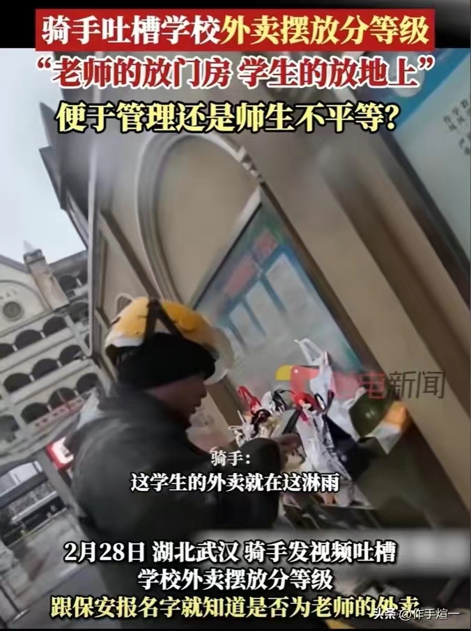 #外卖员称学校外卖摆放分三六九等#外卖的实物现在都有了等级之分!像这样的中学真的能够做到有教无类?真的能够做到教书育人的目标吗?看着他们那些狗眼看人低的做派,觉得这个中学真的应该被整顿了!