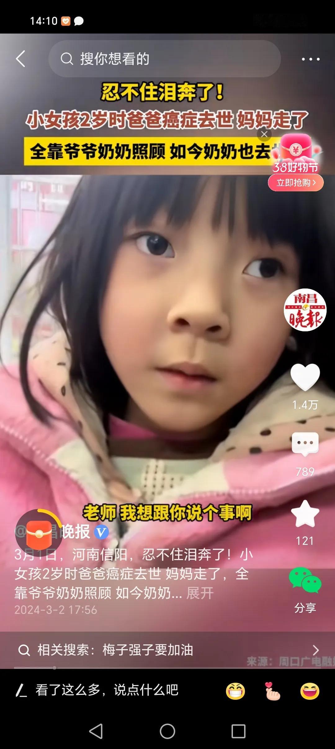 突然泪奔!让这个可爱可怜的女孩子说的话语我哭了,可怜的孩子,2岁丧父爸爸癌症死了,妈妈走了没有消息,是爷爷奶奶把她养这么多,3月1日,小女孩跑到老师的身边,告诉老师:老师,我奶奶死了。 一句话,让她的老师,和屏幕前的我们都泪流满面。 可怜的孩子,这么小没有了爸爸妈妈的爱心,现在最爱她的奶奶又去世了,留下他和爷爷一起生活。 生活很苦,孩子眼里没有光泽。 但是,很多网友知道了这个事情,都想伸出援助之手 帮帮这个可爱的女孩子。 很多网友都想资助她,给她帮助。 众人拾柴火焰高,我们都希望这个女孩子,在大家好的帮助下,好好的和爷爷相依为伴,好好上学,好好生活。