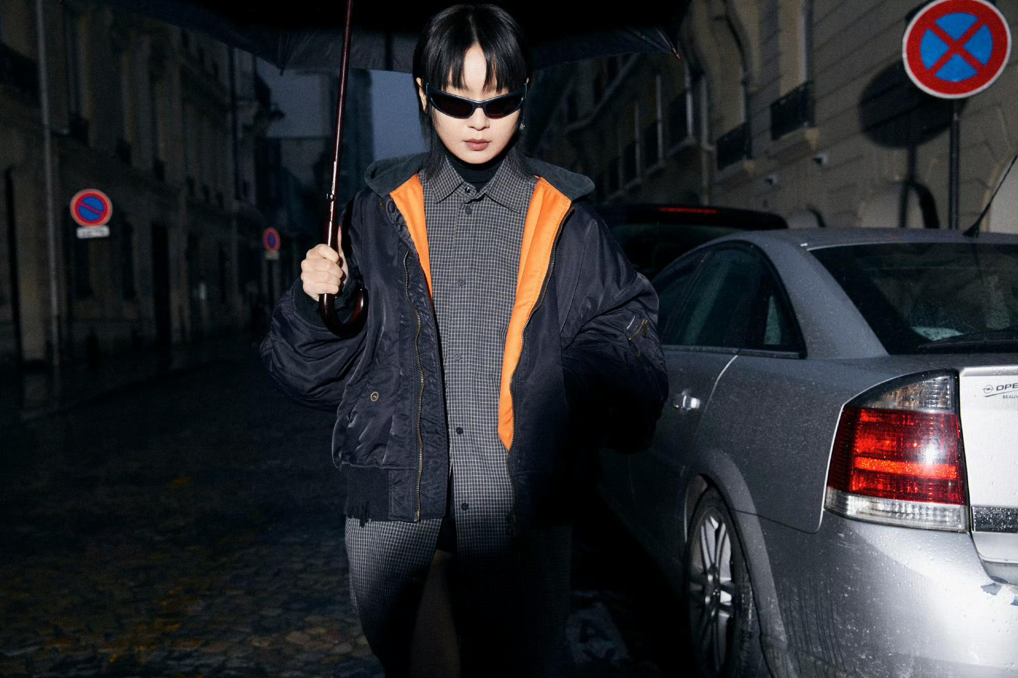 #周笔畅露腿了##周笔畅不冻膝盖吗# 巴黎时装周新造型,在下着雨的巴黎露膝盖,隔