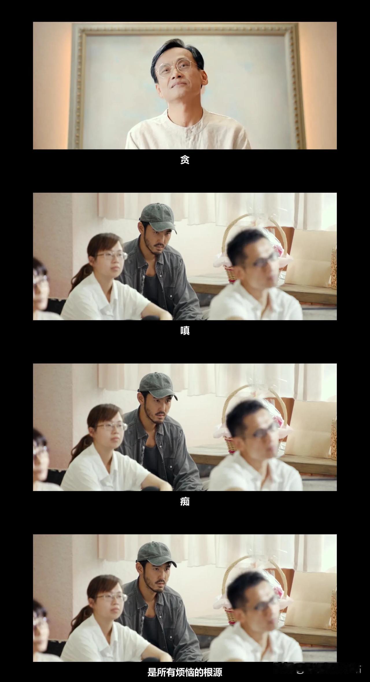 《周处除三害》电影的英文名是《The Pig,The Snake,And The Pigeon》,翻译过来是三只动物,一只猪,一条蛇,一只鸽。 猪蛇鸽子,它们各自象征着佛教“三毒”:痴嗔贪。 猪,象征痴,指的是陈桂林,他一直戴着小猪手表,代表着“愚痴无名”,他不知道自己活着的意义。 蛇,象征嗔,指的是香港仔,他手臂的纹身是蛇,代表着“嗔恚无忍”,他凶狠暴戾。 鸽子,象征贪,指的是尊者,他后背的纹身是鸽子。代表着“贪念无度”,他不仅仅是一个人作恶,而是组织起来一个犯罪团伙行骗。