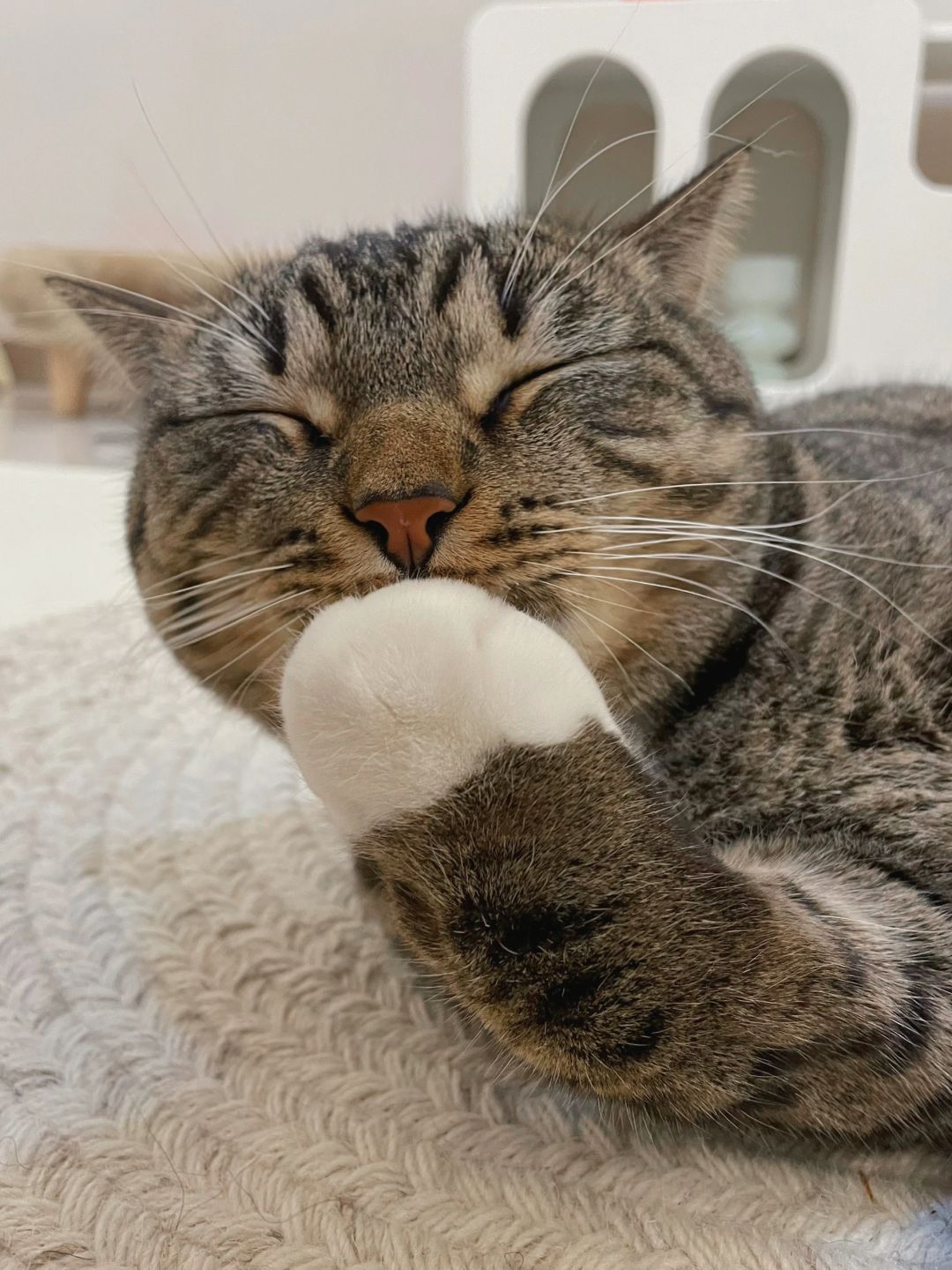今天看饼子非常陶醉地舔猫爪,我还觉得太可爱啦,过去贴贴,结果发现它爪子缝里塞了粮[黑薯问号R]!