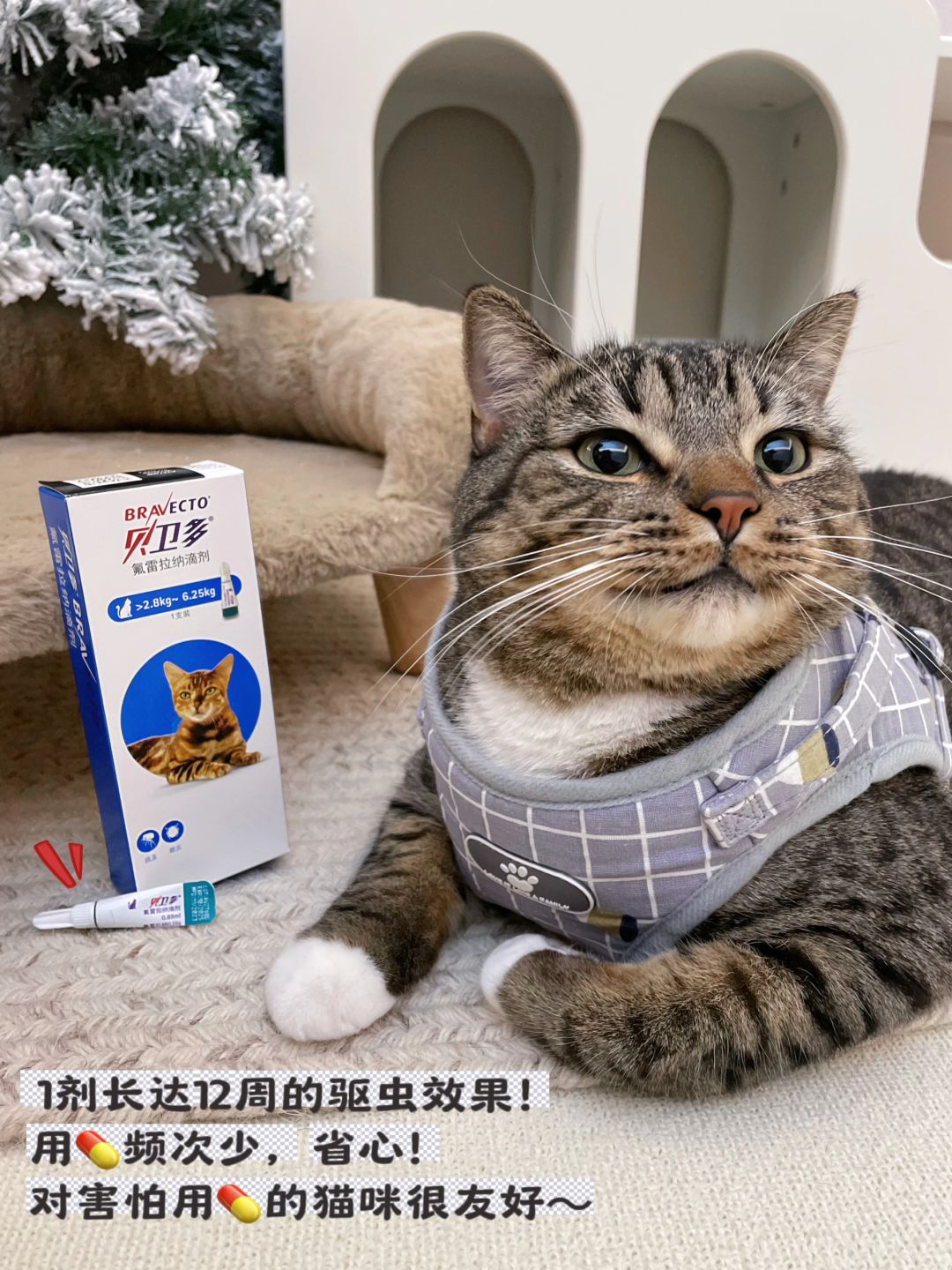 平常工作忙碌,想省心的铲屎官可以试试贝卫多猫咪驱虫💊,1剂就能有长达12周的驱虫效果,算下来一年只需要用4次左右,用药频次少,对害怕的猫咪很友好~也省力多啦!