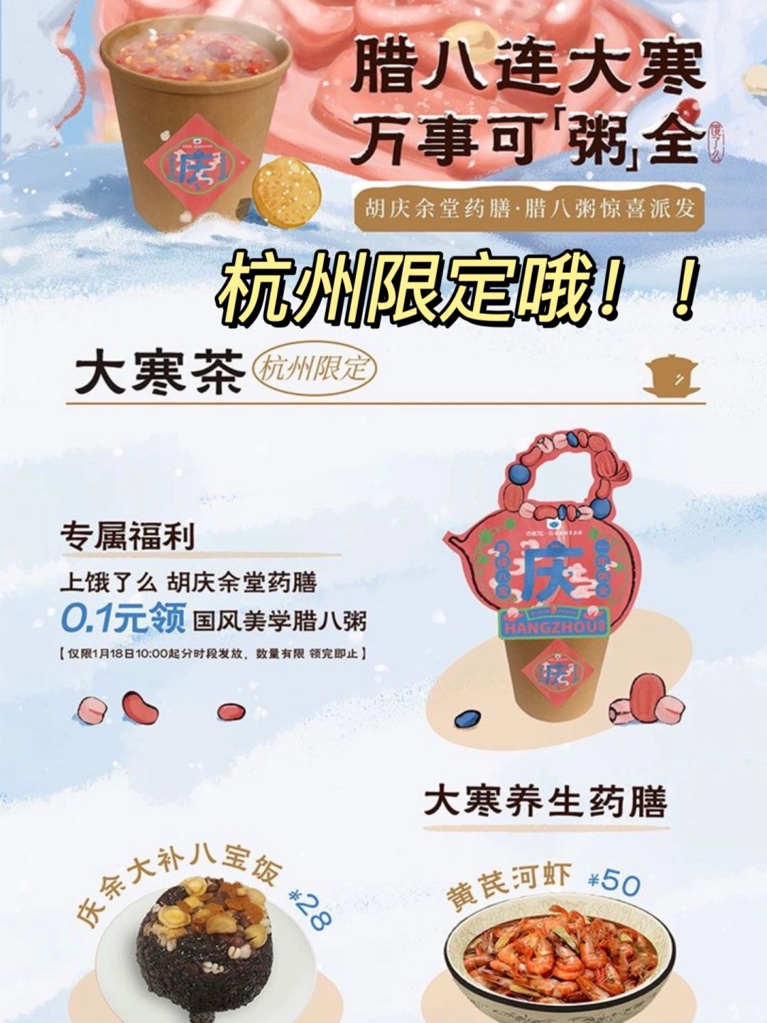 ⏰1月18日当天 0.1元领胡庆余堂药膳馆的国风美学腊八粥哦!!只有今天别错过!