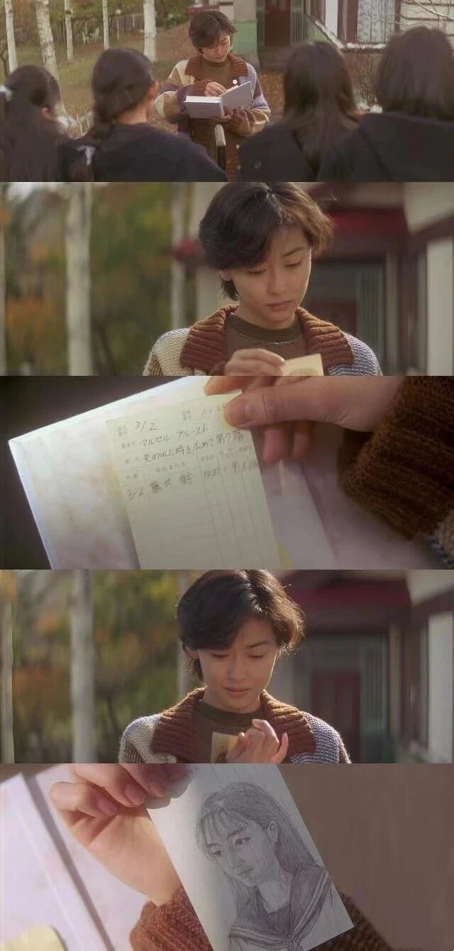 影片是一部将日本物哀美用到了极致的电影。从头到尾,都是在“寻找真相”中牵动着观众的心。而且,影片只是娓娓道来地叙述了一个伤感含蓄的爱情故事。经典的背景音乐,素雅到了极致的构图和渲染,却让人深深共鸣。影片中让我印象无比深刻一幕就是如此。博子曾经给男友写信,有一句话就是“你好吗,我很好”。短短的六个字,含蓄到了极致,内敛到了极致。你看,导演巧妙的将思念这种颇为抽象、艺术化的概念,如此细节性的还原到了日常生活中。这远比那些撕心裂肺,歇斯底里的哭喊更为有力。