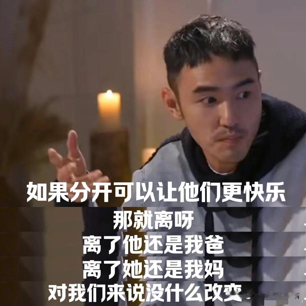 如果你的父母,已经快60岁了,想离婚,你支持吗? 阮经天:“我支持!” 其实,阮经天一开始也是不理解的,他觉得,一大把年纪了,还折腾干啥。 后来他突然发现:妈妈头上有白头发了,脸上的笑容也没了,总是唉声叹气的坐在角落,看上去很正常但她就是不开心了。 所以,他想开了! “她都60多岁了,你干嘛不让她快乐一点,如果分开可以让他们更快乐,那就离呀” “离了他还是我爸,离了她还是我妈,对我们来说没什么改变,但他们就是会比现在更开心呀” 离婚后,阮经天的妈妈真的是肉眼可见的开心,她和阮经天兄弟二人视频,说着自己的生活状态,真的做到了她想要的快乐! 的确,这么大岁数就活得自由点吧!反正爸妈还是那个爸妈!