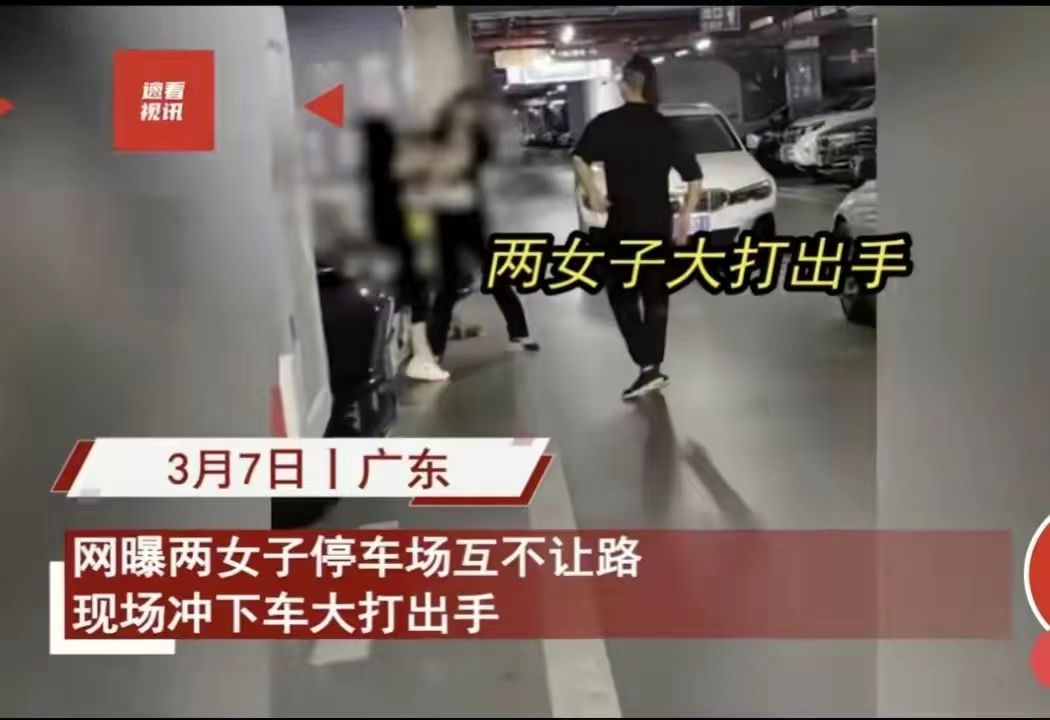 这是发生在广东某地下停车库的一幕,两位女子驾车对面相遇,其实只要其中一辆车稍微让让,另外一辆就能过去,但是大家都互不相让,要对方让车。从斗气到吵架,从吵架到打架。而且都穿着裙子在地上滚来滚去,两个女人薅头发互相踢踹,场面真的好凶残。
