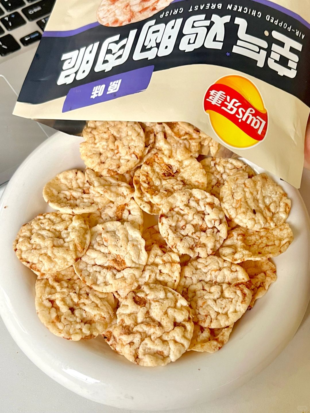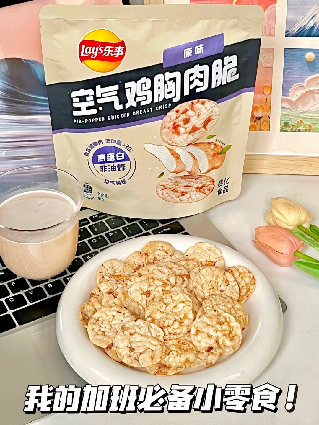 谁懂本加班人的痛!! 天天不到九点十点下不了班,想吃点宵夜 但身材管理又有很多顾虑...🥲 正想着挨挨就过去了...听到我美女同事咔嚓咔嚓的 这谁能忍得住?? 火速飞到她身边hhhhh 讨零食连环问:这是什么呀 好吃吗🤩 瓜分了几片 同事说是前天看Papi酱推荐买的乐事空气鸡胸肉脆 现在已经成为她的办公室必备💻零食了~ 每一片都添加了真实的鸡胸肉粒 真材实料这很难不好吃啊! 咔嚓咔嚓的还能嚼到鸡胸肉粒 尝了一口我直接激情囤了两大包...🤣 原味在某宝买的!很轻盈薄脆的口感!吃起来有鸡胸肉香味!好吃又不腻! 炙烤鸡肉味特地去山姆狠狠拿下! 比原味多了一丝炙烤香味 我好爱!! 而且还是高蛋白非油炸的小零食!吃起来也不会有太重的心理负担 平时加班想放松的时候来一包 真的太解馋了!吃完干劲十足!活力满满太快乐啦 这款乐事空气鸡胸肉脆简直是我的办公室好搭子!!姐妹们赶紧一起多囤点!