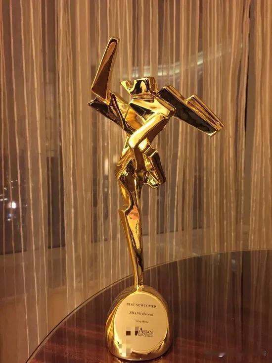 亚洲电影大奖的奖杯,是啥样的? 由著名美术指导张叔平亲自设计,概念来源于大厦的结构图。以张叔平家中摆设的雕塑为依据,整个奖杯用黑铜做原料,以云石做底座,整个奖杯造型都以硬线条为主,唯一的弧线出现在奖杯头部。 第二期届后开始镀金,整体造型像一个进击的小金人。 恭喜赵丽颖获得第17届亚洲电影大奖 AFA 新世代奖! 努力就会有回报,赵姐的演技是真的很棒!期待3.18与《与凤行》沈璃见面!