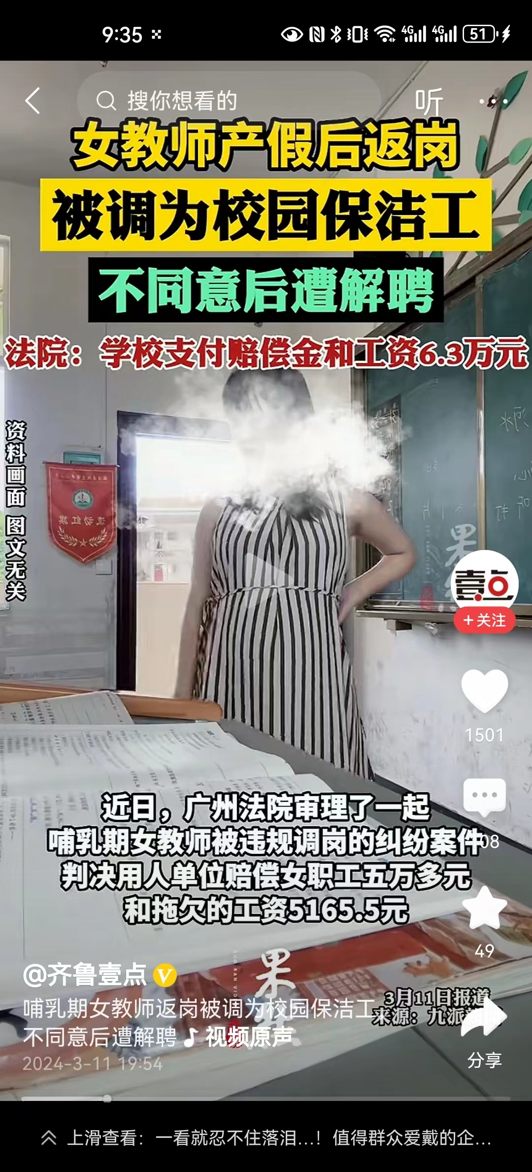 在广州市中院刚刚判决了一个案例,维持了番禺法院的一审判决。其中对于违法解除劳动合同的赔偿,定为劳动法规定中的两倍上限,确实支持了女教师的诉求。但是我们仔细看看整个事件的结果以及判决结果,是不是仍然觉得不太公平呢?