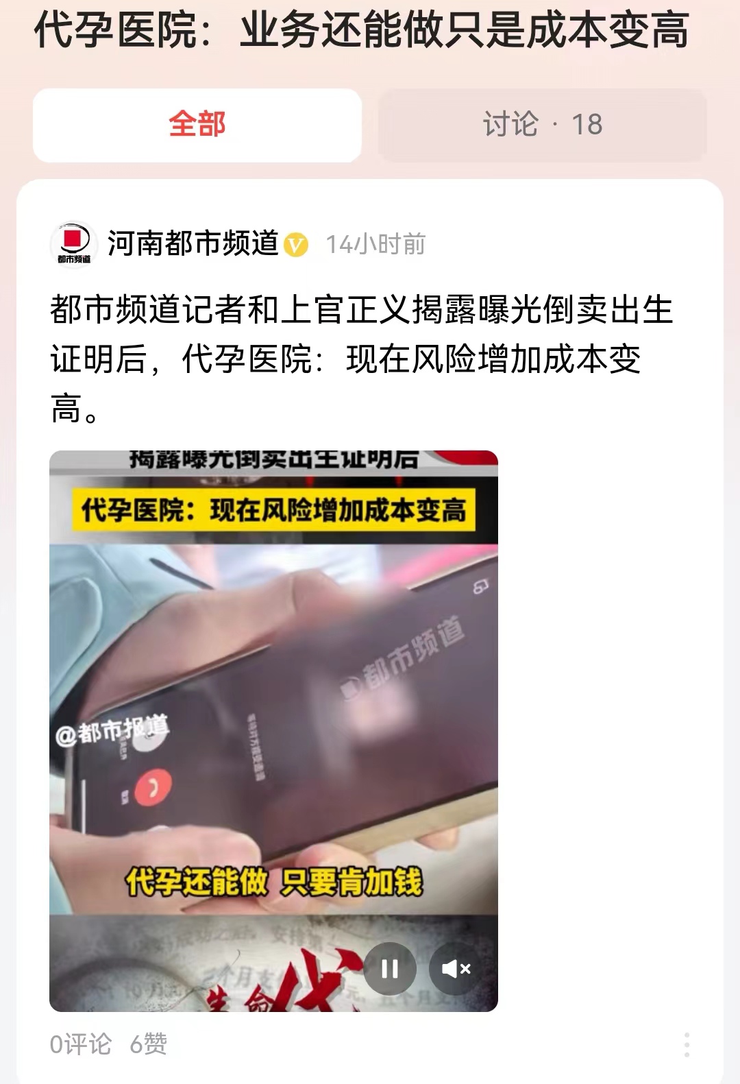 #代孕医院:业务还能做只是成本变高#谁能想到,要求按照法律规范运作变成了代孕医院最后加钱的借口了呢?上官正义在揭露了代非法代孕黑色产业链之后,现在情况如何呢?记者做了暗访,结果仍然是触目惊心。