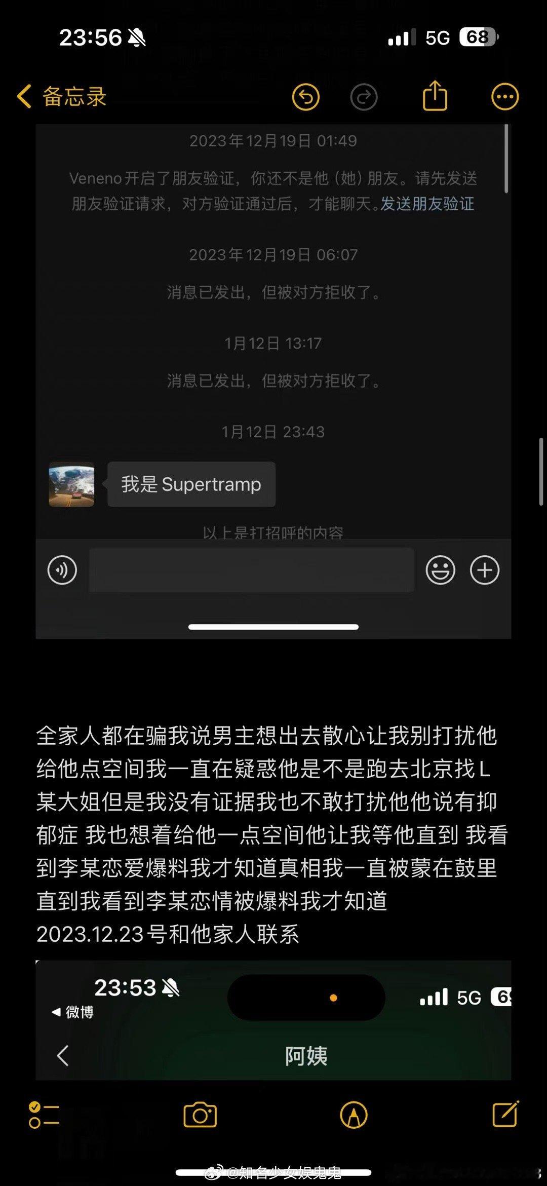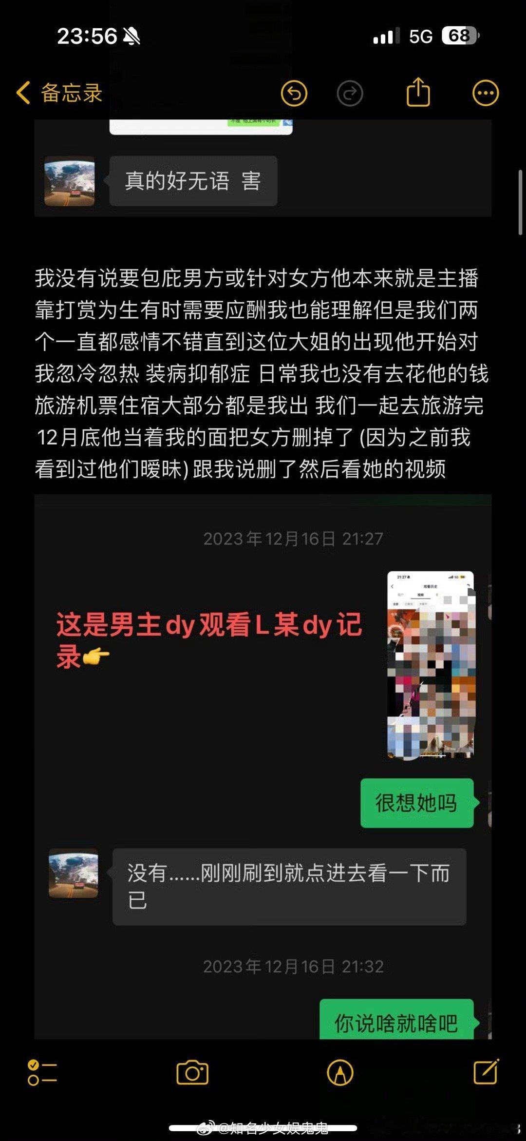 #网友晒李金铭男友聊天记录# 刘大锤曝光李金铭恋情,网友称是李金铭男友的女朋友,晒与李金铭男友聊天记录回应,这? #网友晒与李金铭男友聊天记录#